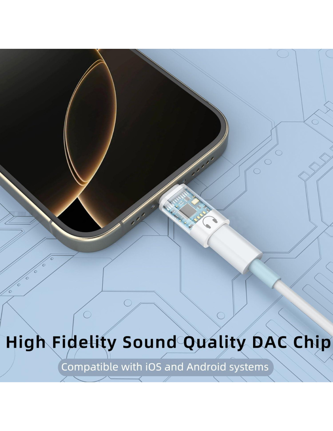 Jadebones Paquete de 3 Adaptadores de Audio USB C a Lightning para iPhone 16/15, iPad Pro/Air, MacBook y Más (Solo para Auriculares, Sin Carga), Blanco
