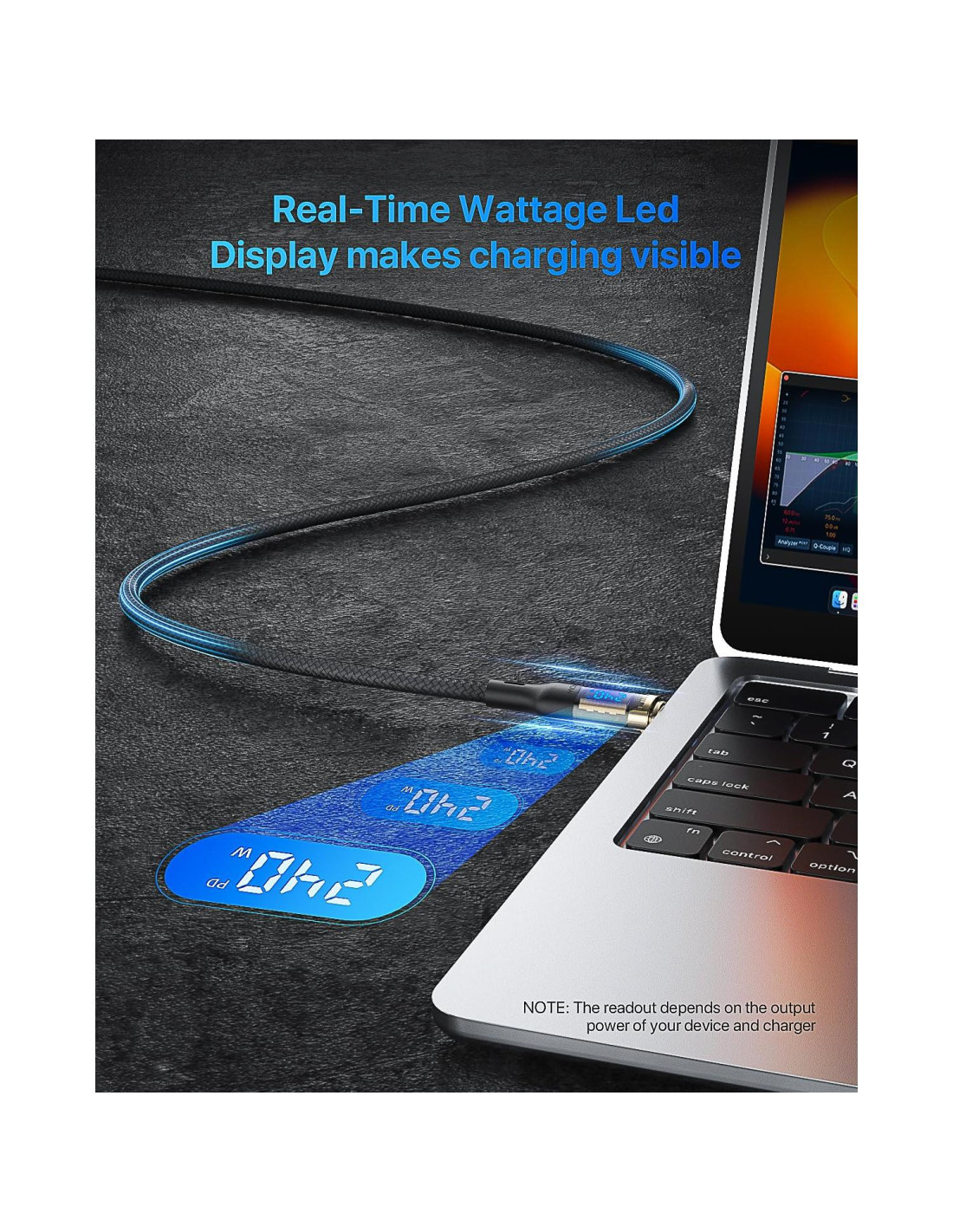 - Pantalla de potencia inteligente: Con el popular diseño de pantalla LED, muestra la potencia en tiempo real durante la carga. Significa un proceso cambiante de potencia y te ayuda a monitorear el estado de carga de tu dispositivo en cualquier momento.
