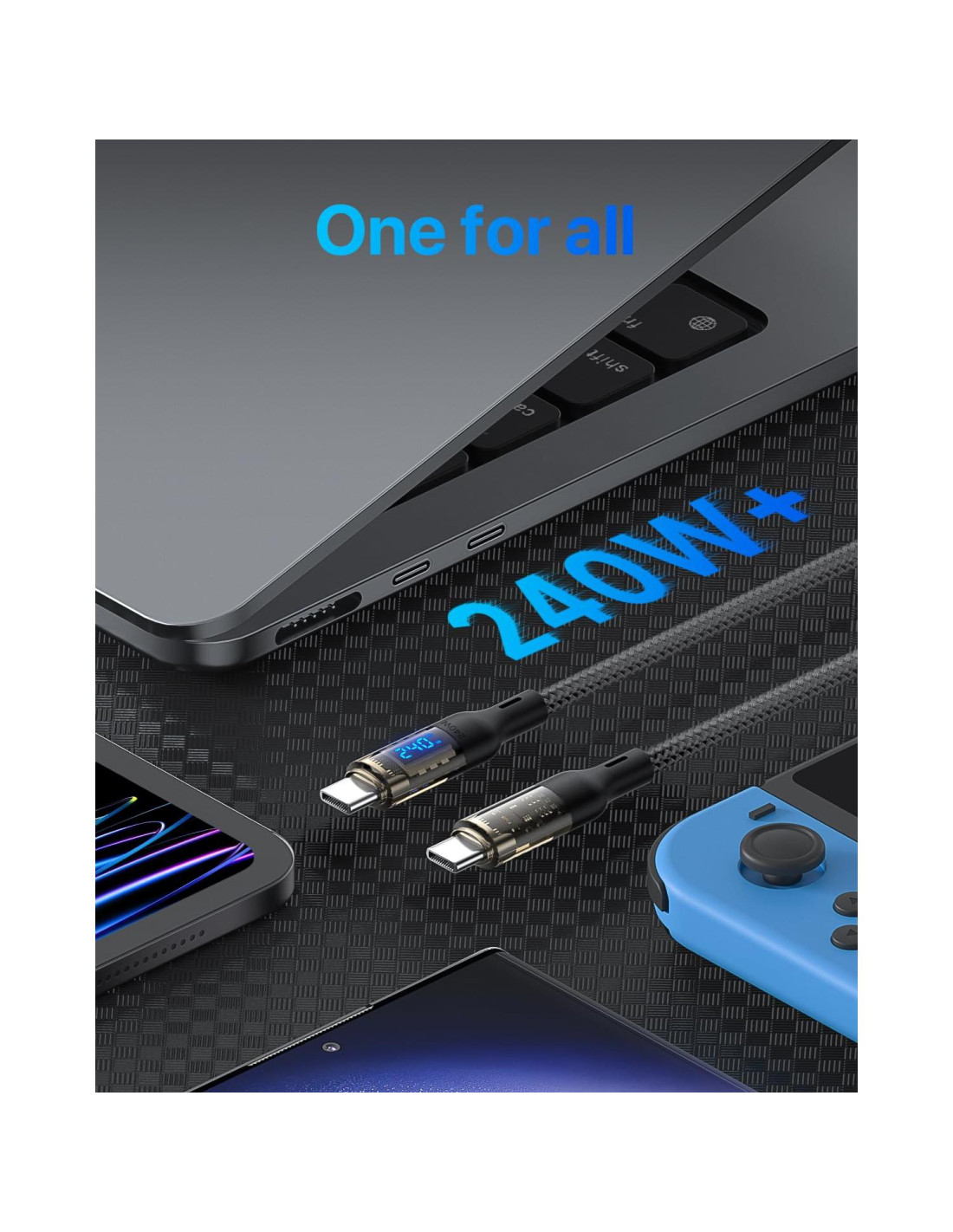 - Uno para todos: Funciona sin esfuerzo con cualquier dispositivo USB C, incluyendo teléfonos, tabletas y laptops.