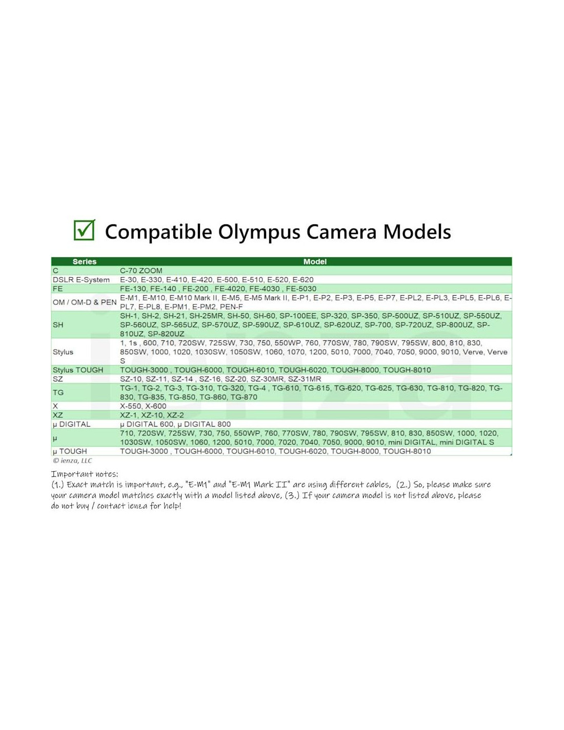 - También para Olympus Tough TG-860 TG-870. Compatible con el modelo Olympus C170, C180, C480, C500 Zoom, C5500, C7000, C-170, C-180, C-480, C-500 Zoom, C-5500 SportZoom, C-7000.