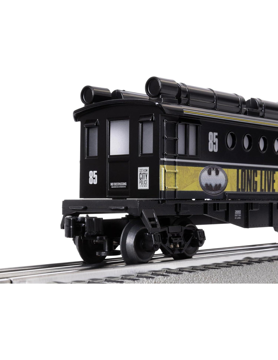 - CARACTERÍSTICAS: Compatible con Lionel O Gauge / Camiones de fundición / Acopladores operativos / Señal de Murciélago iluminada / Iluminación interior