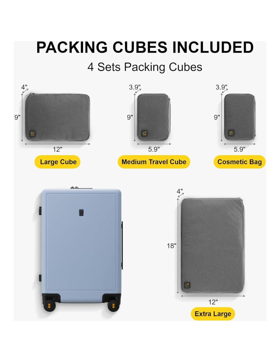 - Dimensiones Totales de 20 Pulgadas: 21.5 x 14.5 x 9.2 Pulgadas (54.5 x 37 x 23.5 cm, incluyendo ruedas y mangos); Peso: 8.71 lbs (3.95 kg) con cubos, 7.72 lbs (3.50 kg) solo maleta; Capacidad de empaque: 40 L; Perfecto para viajes de 1-3 días