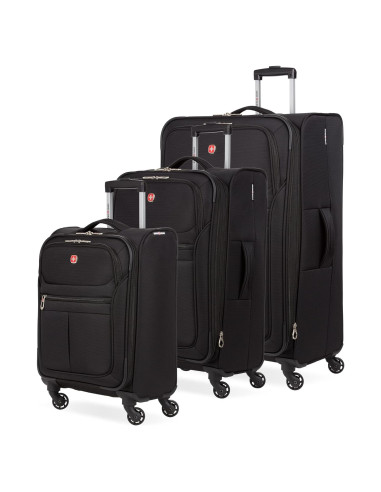 Escápate con confianza con la colección SwissGear 4010 Spinner. Esta colección de equipaje de aspecto sofisticado viene equipada con un mango retráctil de bloqueo resistente, mangos de elevación ligeros y cuatro ruedas giratorias ligeras de 360 grados para la máxima maniobrabilidad. Construido con tela de poliéster resistente a la abrasión, otras características incluyen correas ajustables para asegurar la ropa, múltiples bolsillos internos y dos bolsillos de almacenamiento frontales para adiciones de último minuto.