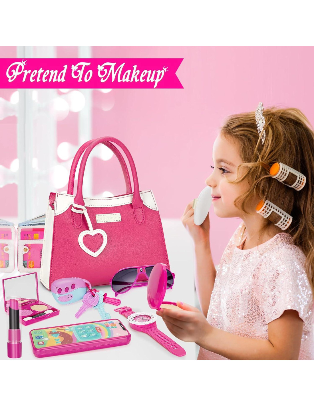 - Mi Primer Juego de Bolso: El juego de bolso de viaje tiene todo lo que la niña pequeña necesita al salir. Incluye un bolso de mano a la moda, billetera, teléfono celular, polvo compacto, lápiz labial, sombra de ojos, llave de coche y 3 llaves, gafas de sol, reloj, etc. Este juego de maquillaje de 21 piezas es un regalo perfecto para niñas de 3 años. ¡Tu pequeña princesa los adorará porque son tan encantadores!