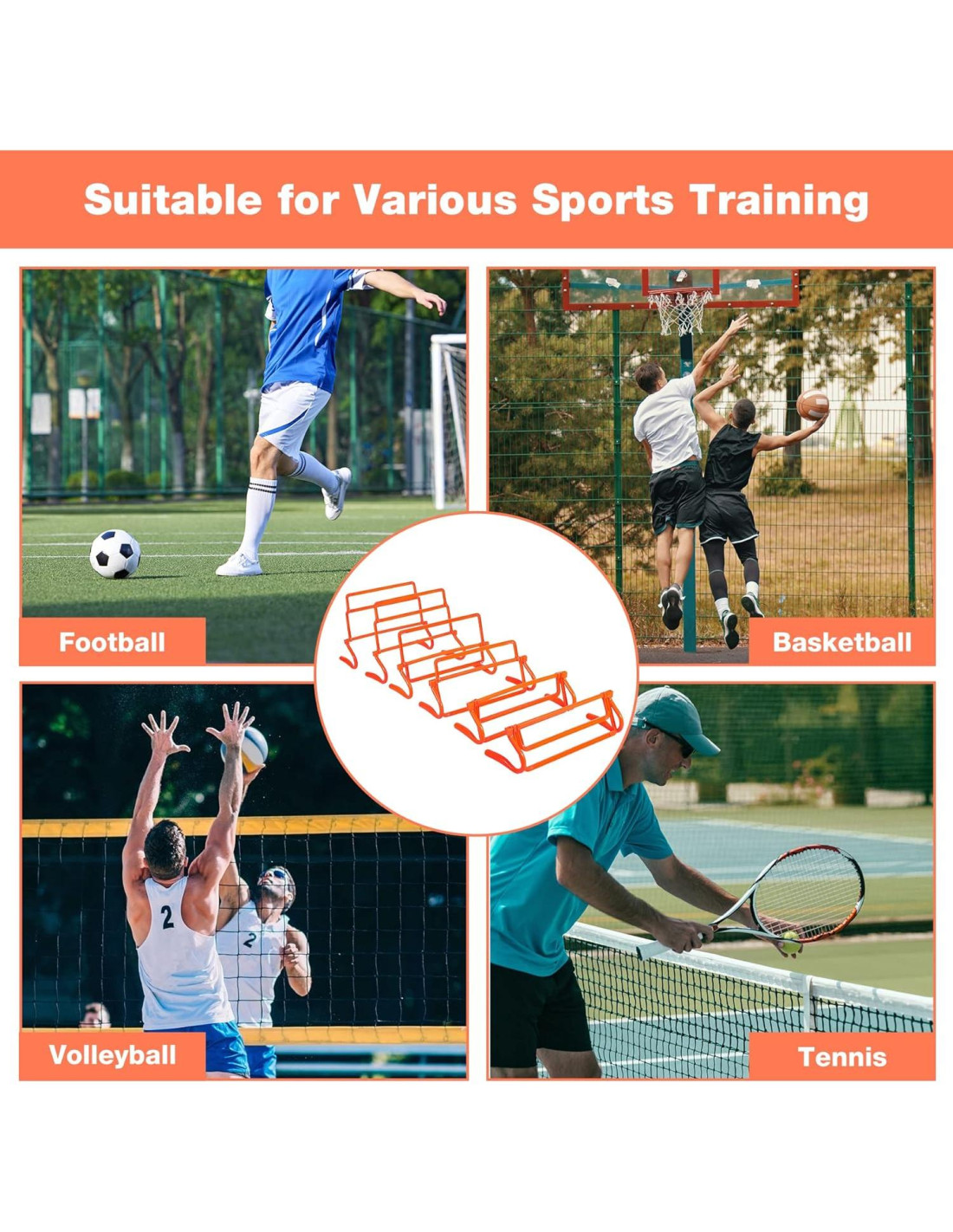 - 4 Alturas Ajustables: Cada barrera de agilidad tiene 4 configuraciones de altura (15.24, 22.86, 30.48 y 35.56 centímetros), aumentando los niveles de intensidad del entrenamiento sin llevar equipos voluminosos. Colores brillantes proporcionan una visibilidad clara durante el entrenamiento