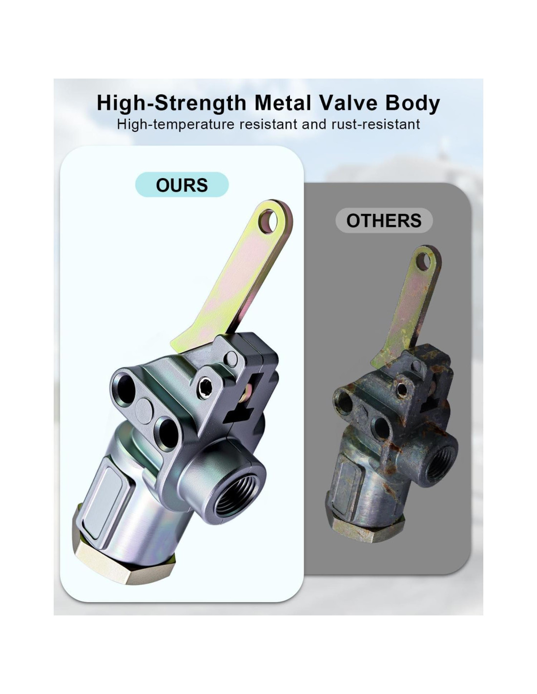 Control Preciso, Advertencia Poderosa, Cada Presión Puede Emitir un Sonido Claro y Fuerte ¿Por Qué Elegir Nuestra Válvula de Control de Claxon de Aire? Efectos de sonido mejorados Respuesta rápida y precisa Diseño sellado y a prueba de fugas Rendimiento estable Duradero y resistente a la corrosión Ajuste preciso Fácil de instalar Compatible con los siguientes modelos: Compatible con Volvo V1113619 G2496459 1113619 02-7018563 506481 3082411 547619 Compatible con Mack 86RD13A Compatible con Bendix 228928
