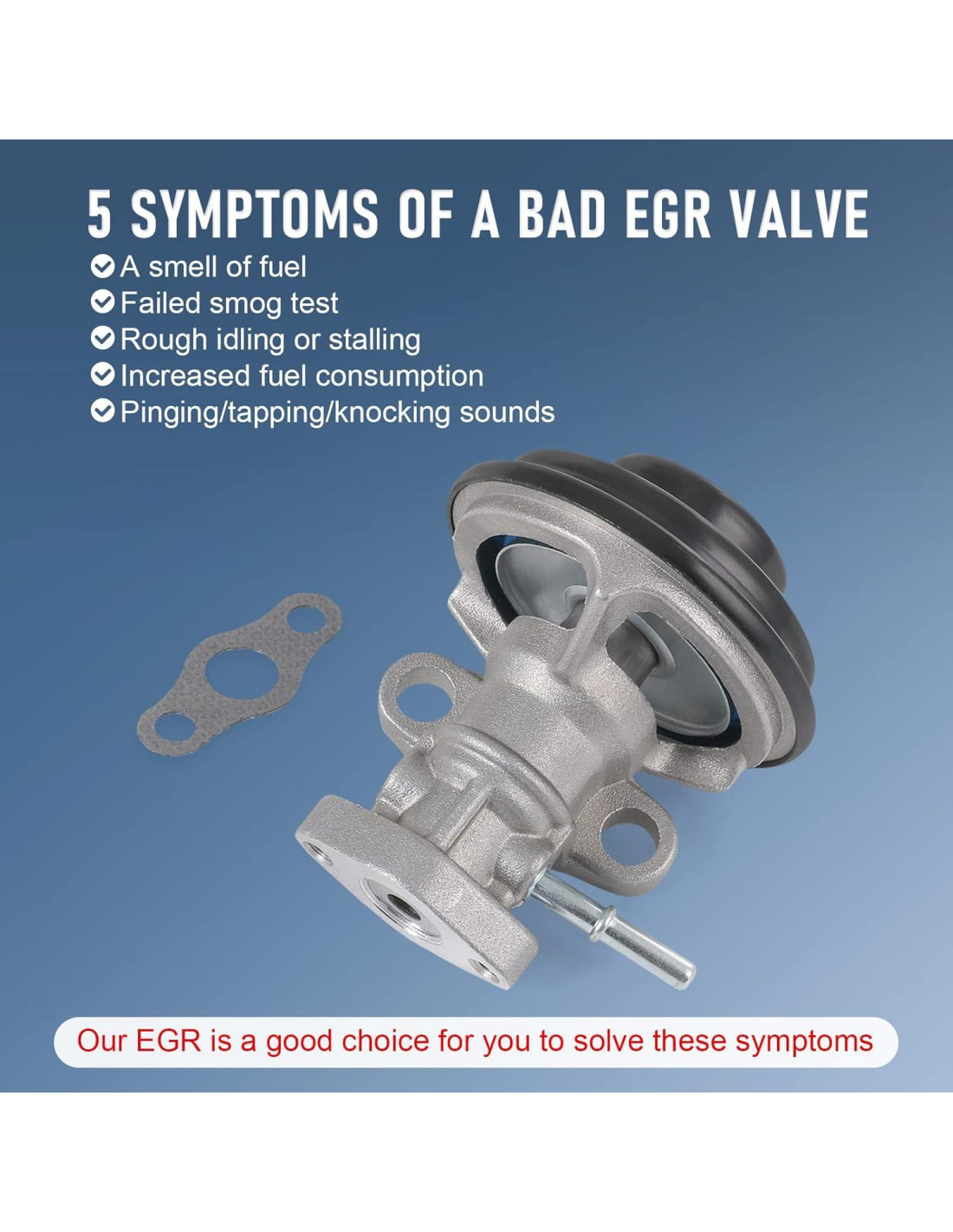 - [BUENA ELECCIÓN] Una válvula EGR defectuosa incluye 5 síntomas: Un olor a combustible, prueba de smog fallida, funcionamiento irregular o paradas, aumento en el consumo de combustible y sonidos de golpeteo/sonidos de golpeo. Cuando ocurren las situaciones anteriores, la válvula EGR necesita ser reemplazada a tiempo. Nuestra EGR es una buena opción para resolver estos problemas.