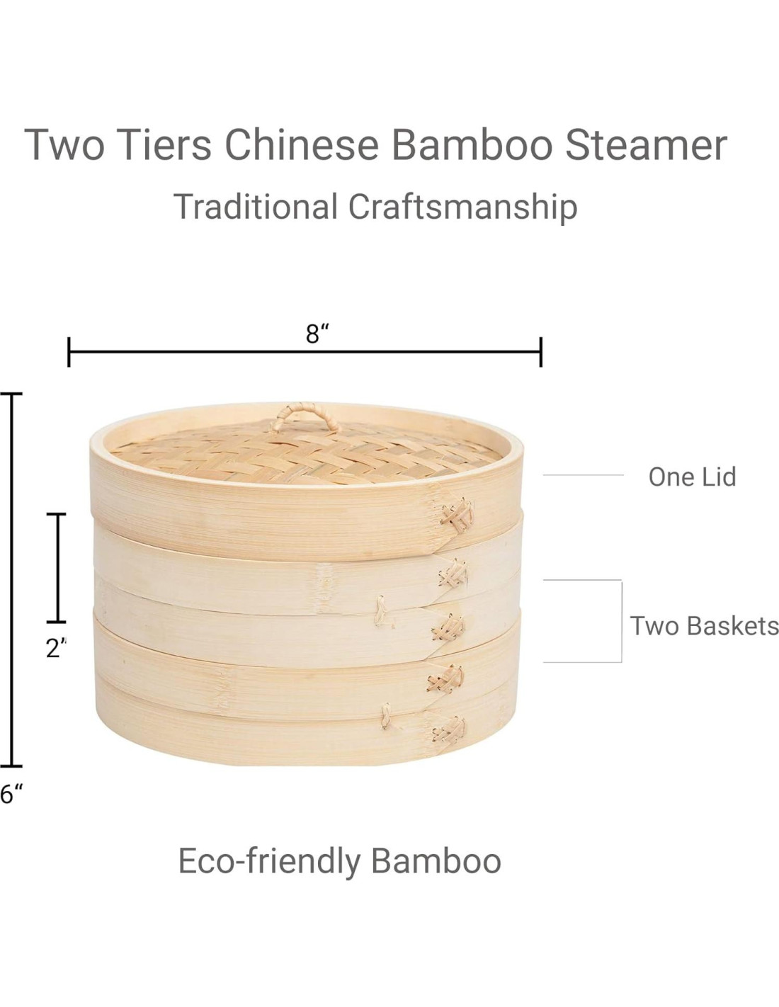- Diseño Artesanal Tradicional: Nuestra vaporera de bambú china tradicional hecha a mano incluye una tapa y dos cestas apilables, permitiéndote cocinar múltiples platos simultáneamente. Perfecta para cocinar al vapor dim sum, dumplings, buns, mariscos y verduras, esta vaporera preserva la autenticidad de la cocina china mientras hace que la preparación de comidas sea eficiente y sabrosa. Añade un toque de artesanía tradicional a tu cocina con esta versátil vaporera de bambú.
