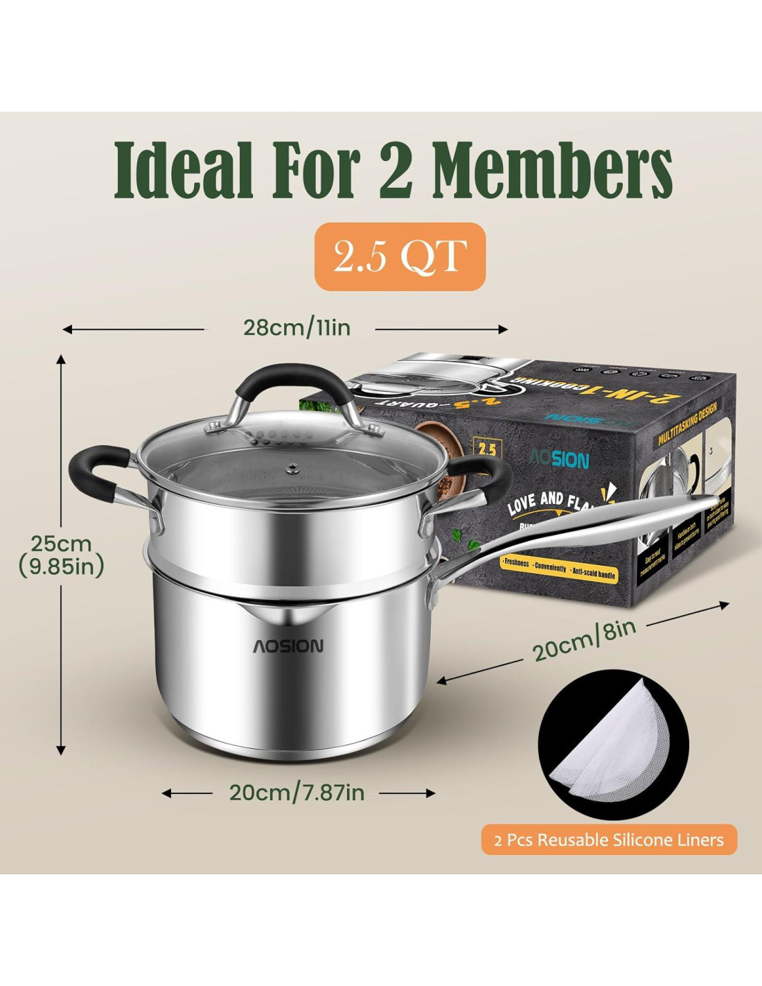 - COMBINACIÓN DE VAPORIZADO Y HERVIDO CON REGALOS: La sartén de acero inoxidable viene con un inserto de vapor con dos forros de vapor, lo que la convierte en una herramienta de cocina versátil. Puedes vaporizar fácilmente verduras, mariscos y más, mientras también usas la cacerola para tareas de cocción regulares como hervir, cocinar a fuego lento y hacer salsas. Ideal para cocinar a fuego lento, hervir y cocinar despacio, esta cacerola es perfecta para preparar sopas, guisos, pasta, chili y mucho más.