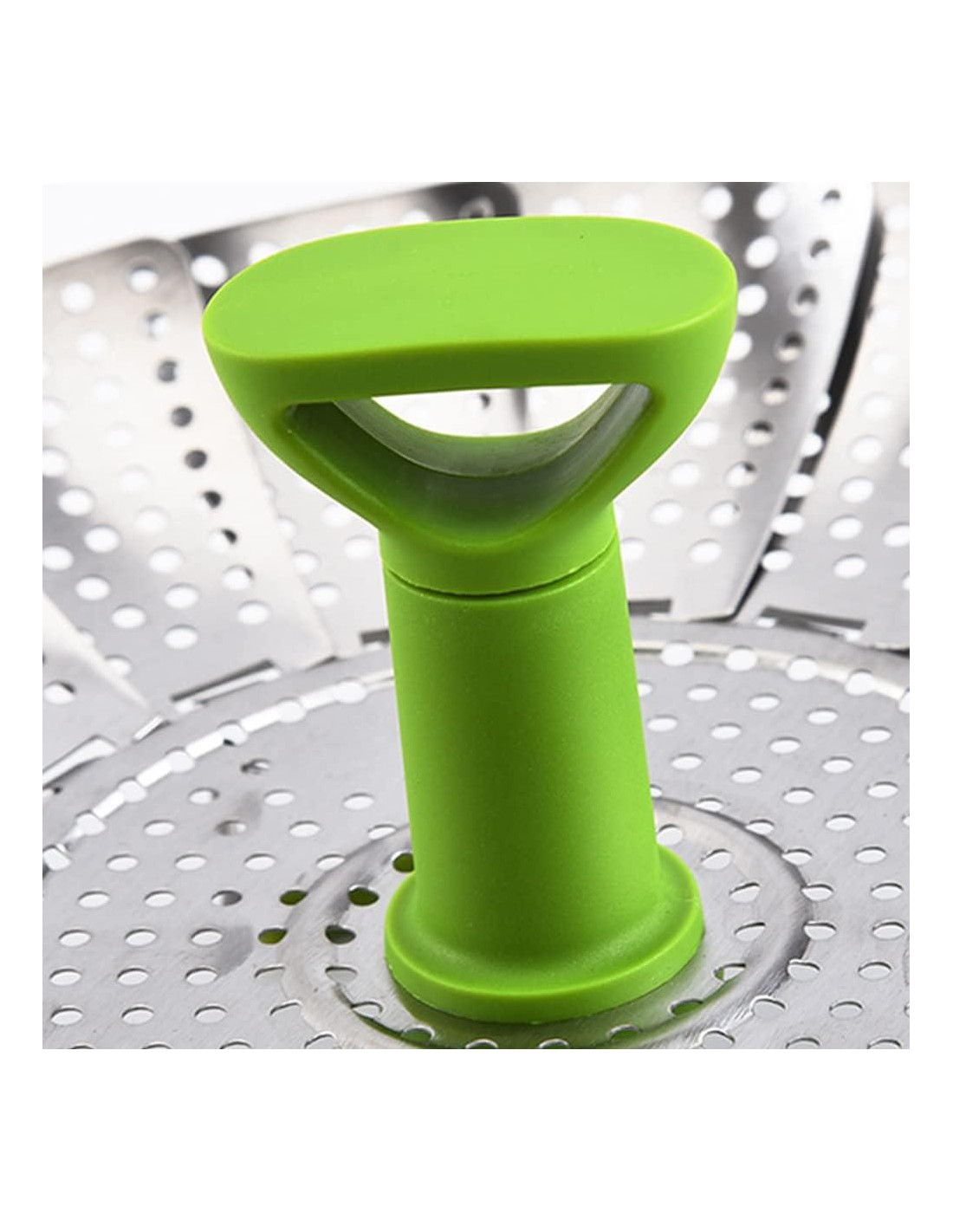 - Diseño de Columna Central Telescópica: Cuenta con un mango telescópico que se puede retraer para evitar obstruir el cierre de la tapa y extenderse para una fácil inserción en ollas profundas. Un orificio en la parte superior facilita levantar la cesta de vapor con un tenedor, manteniendo las manos alejadas del vapor caliente y asegurando una operación segura. El mango se puede quitar para cocinar al vapor ingredientes más grandes como maíz, atendiendo a diversas necesidades de cocción