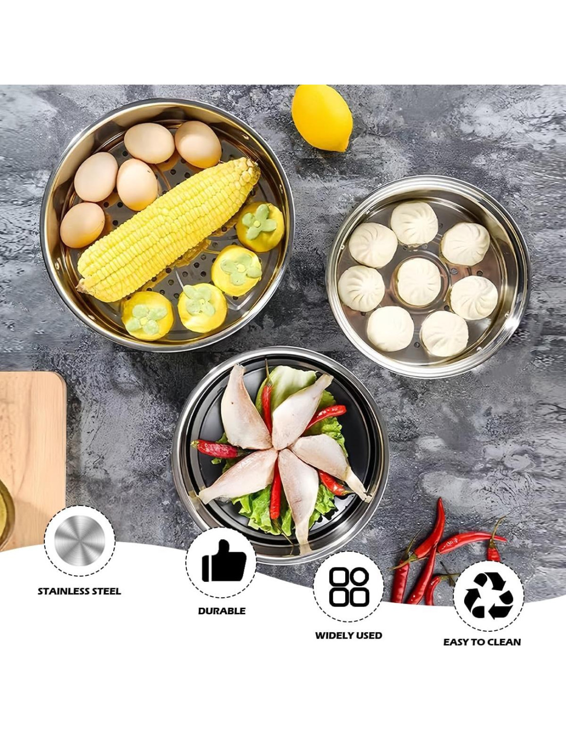 Características Color: Plata Material: Acero Inoxidable Tamaño: 16x16x6 cm Tamaño: 18x18x6 cm Tamaño: 20x20x7 cm Tamaño: 22x22x8 cm Tamaño: 24x24x8 cm Paquete Incluye: 1 x Cesta de Vapor Nota: Por favor, verifica el tamaño de tu olla antes de comprar.