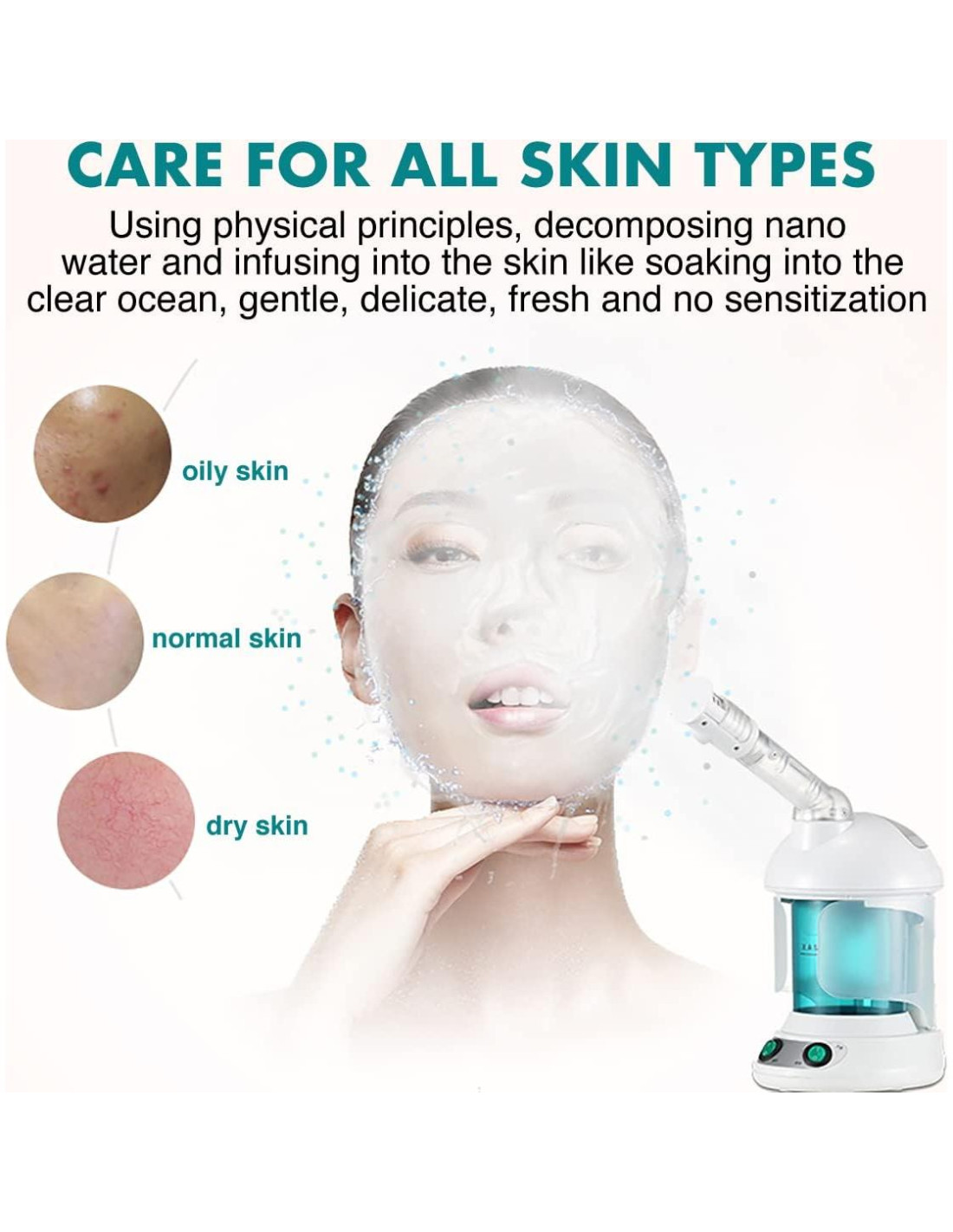 - DISEÑO DE MESA 2 EN 1 (CABELLO, CARA Y HUMIDIFICADOR) - El vaporizador de cabello y cara de la marca para uso en casa es un producto versátil que se puede usar como vaporizador de cabello para tratar el cabello quebradizo y dañado, un vaporizador facial para tratar los poros y la piel seca, o un humidificador para mejorar la calidad del aire en tu espacio. Su diseño compacto y conveniente de mesa lo hace perfecto para el cuidado personal en casa o en el salón.