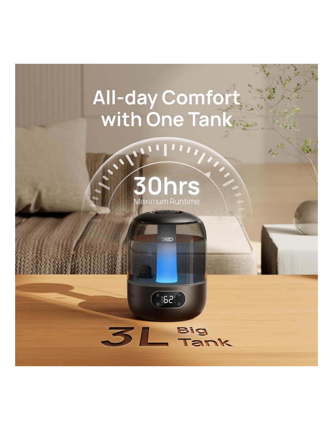 - Duerme profundamente, noche tras noche: Disfruta de un sueño sereno con el humidificador de aire DREO de 28dB (en modo de sueño), diseñado para la máxima comodidad de tu bebé. Personaliza tu espacio con iluminación ambiental ajustable que se puede encender o apagar según sea necesario.