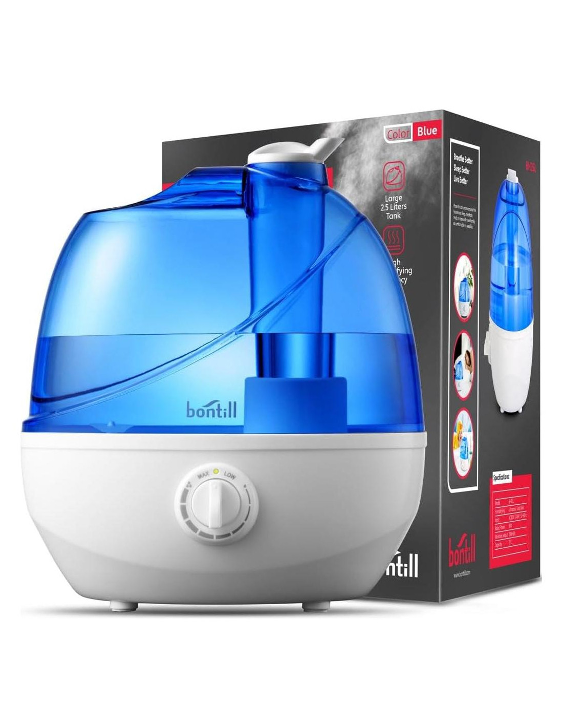 - TANQUE FÁCIL DE LLENAR SIN FILTRO: El elegante y transparente tanque de agua de 2.5 litros es fácil de llenar directamente desde el fregadero de tu cocina o baño, este humidificador libre de BPA viene con un adaptador de corriente de CA, no se necesita filtro, fácil de limpiar