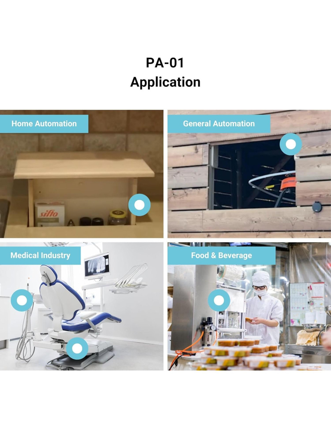 - Alta Protección - Materiales de alta calidad como la varilla de carrera de acero inoxidable y la carcasa de aleación de aluminio combinados con una clasificación de protección a prueba de agua IP65 aseguran alta protección para el actuador mini PA-01 para manejar entornos difíciles