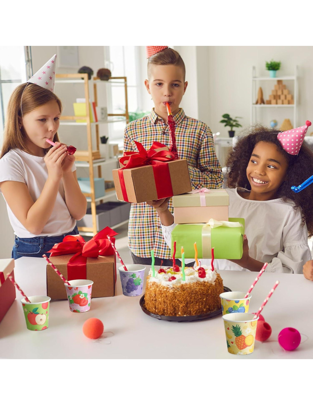 - Atractivo y Adorable: estos vasos de papel para baño adoptan diversos patrones de frutas del bosque, como fresa, piña, arándano, limón, manzana y uva, llamativos y coloridos, que atraerán la atención de los niños