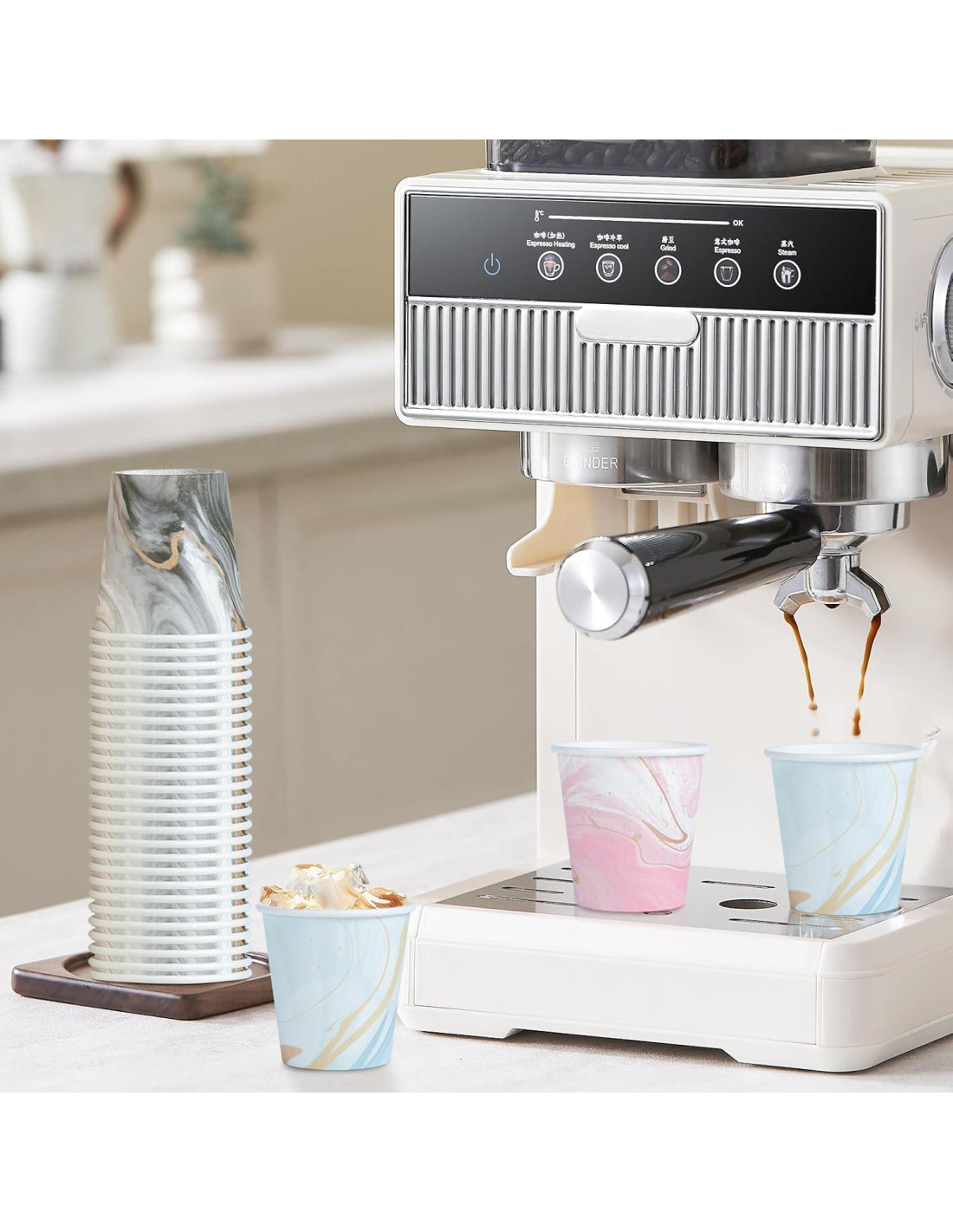- Diseño Elegante: Los vasos de papel para café presentan un hermoso diseño de mármol en diferentes colores, desde rosa hasta gris y azul. La impresionante impresión se ve encantadora en cualquier configuración del hogar, añadiendo un toque de estilo