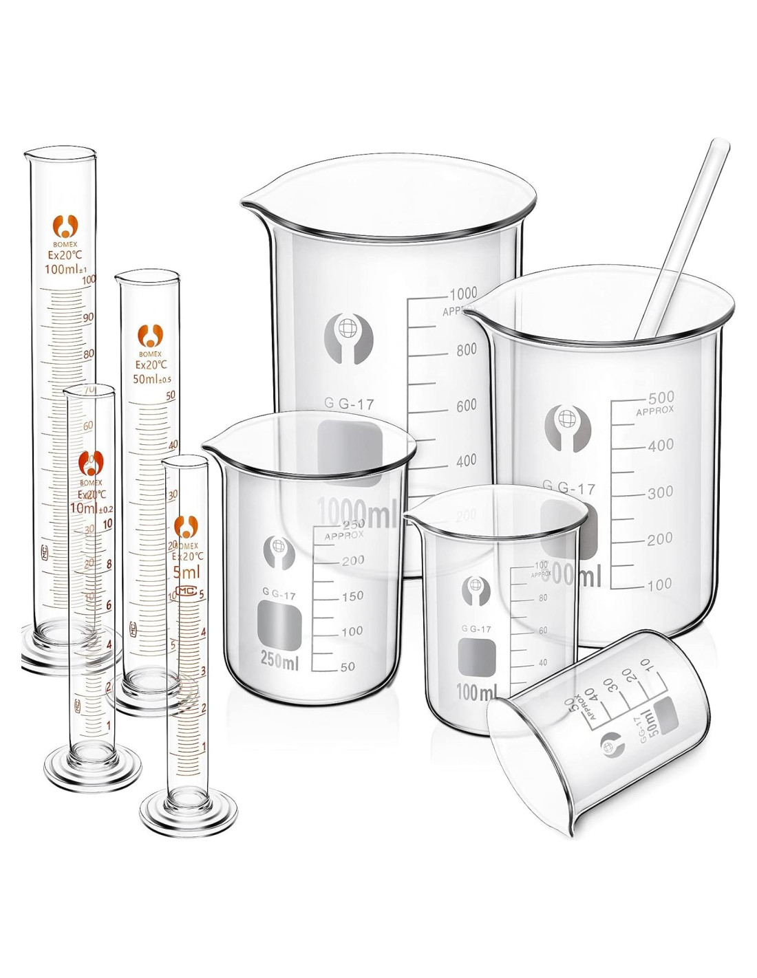 - Amplia aplicación: este juego de vasos medidores de vidrio tiene una amplia gama de tamaños, es fácil de limpiar, un buen regalo para experimentadores, también es adecuado para proyectos escolares, laboratorios en casa o fiestas de cumpleaños con temática científica.