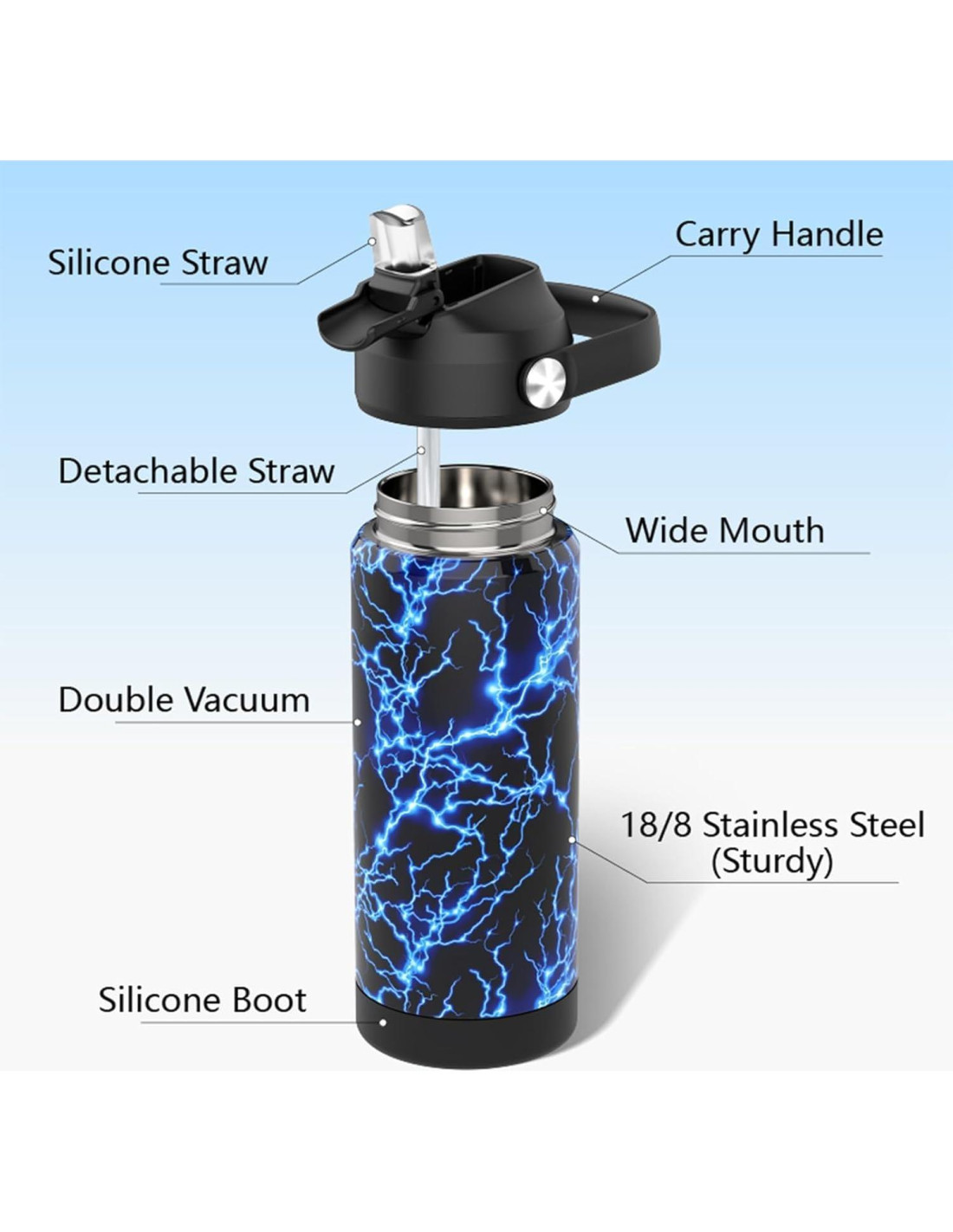 - Componentes incluidos: Botella de agua de acero inoxidable, Tapa de Pajilla