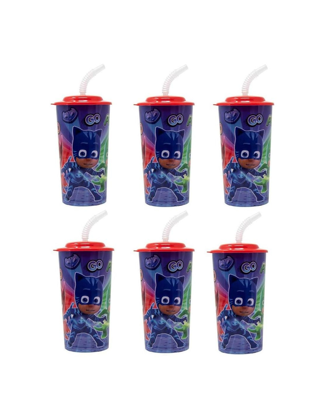 - Vasos Reutilizables PJ Masks de 16 Oz - Paquete de 6 Vasos de 16 Oz con Tapas y Pajitas (Vaso PJ Masks con Pajita).