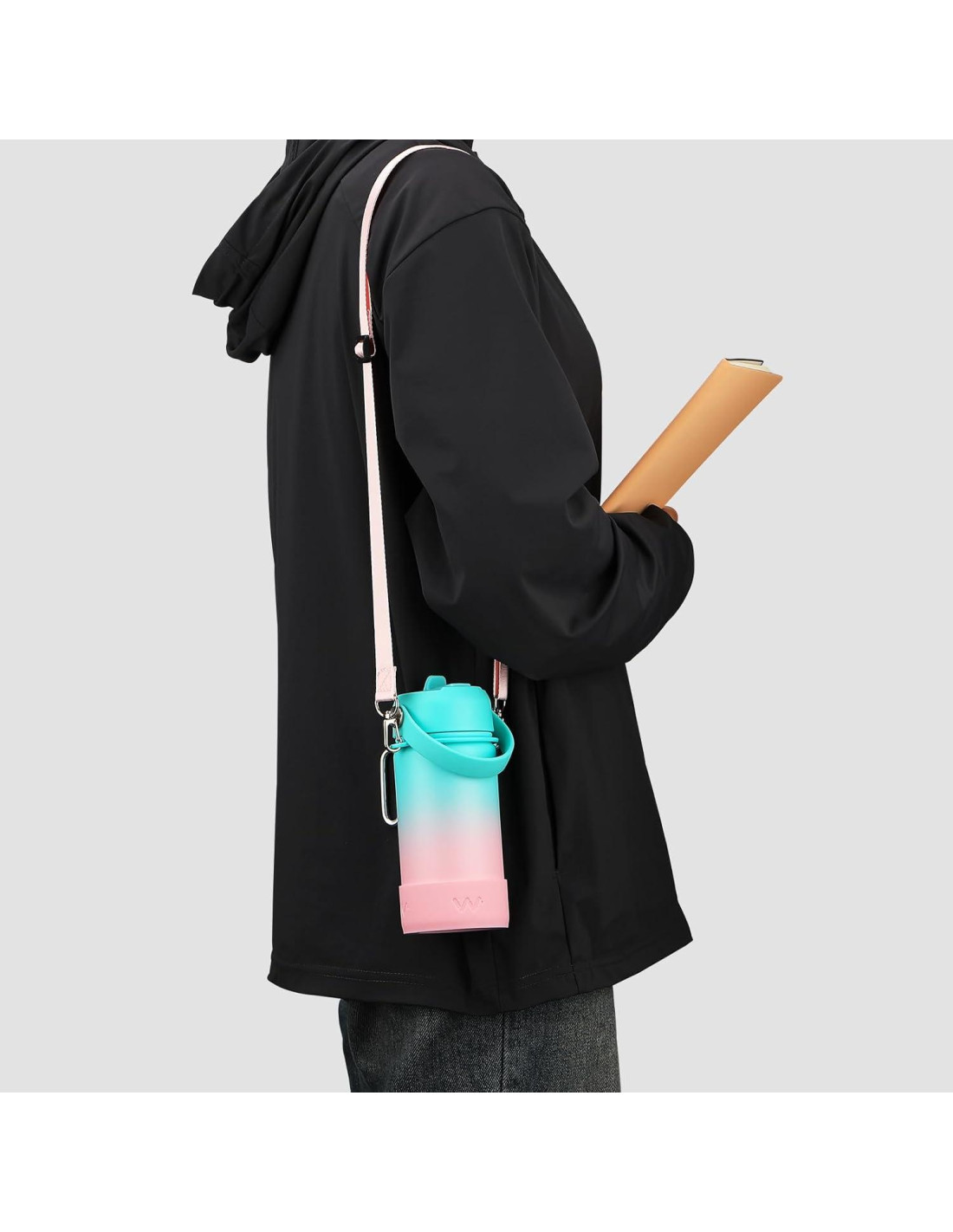 - REGALO EXTRA - ¡Di adiós a las botellas de agua voluminosas! Nuestra botella de acero inoxidable de 18 oz (532 ml) viene con una correa ajustable que facilita su transporte y libera tus manos para otras actividades. Además, la funda de silicona proporciona protección adicional para mantener la botella segura y protegida de caídas e impactos.