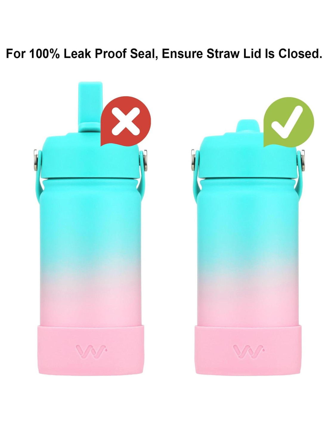 - TAPA DE POPOTE A PRUEBA DE FUGAS - Nuestra tapa de popote es a prueba de fugas cuando está en posición cerrada. La tapa de popote a prueba de fugas y el mango suave facilitan que los niños lleven la botella de agua con ellos mientras están en movimiento.