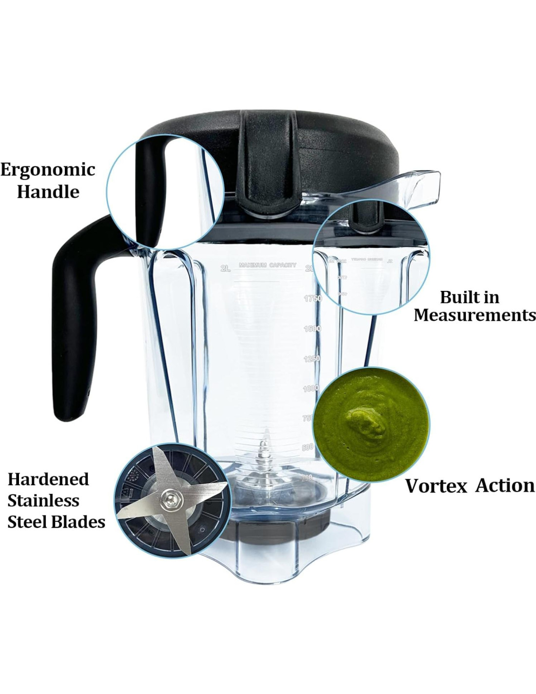- Gran Capacidad Esta jarra de licuadora para Vitamix puede contener 2 Litros, ideal para grandes lotes, adecuada para uso doméstico y comercial.