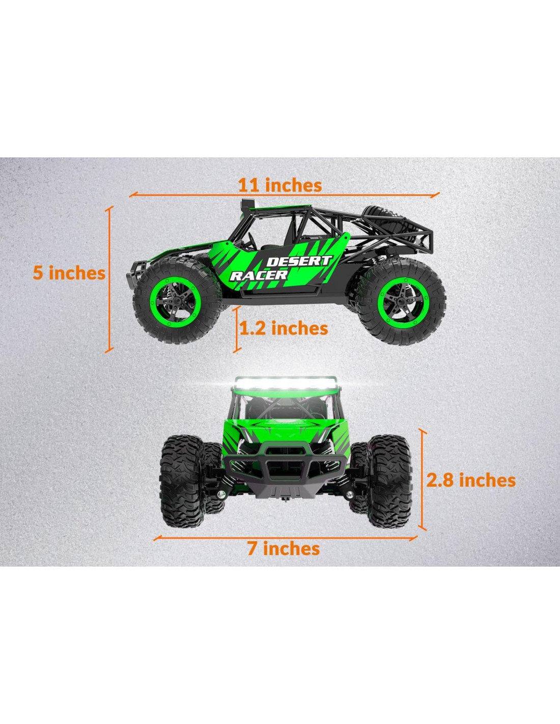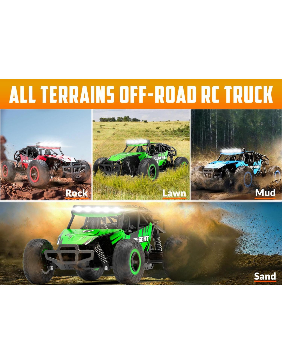 - LUZ LED PARA CARRERAS NOCTURNAS: Este camión rc de carreras de alta velocidad cuenta con múltiples luces LED para destacarse en cualquier entorno. Incluso de noche, los faros iluminan el camino por delante, permitiéndote jugar con facilidad y confianza. Disfruta del diseño realista a escala 1:16 de este fenomenal camión RC con tus amigos y familiares, tanto en interiores como en exteriores.