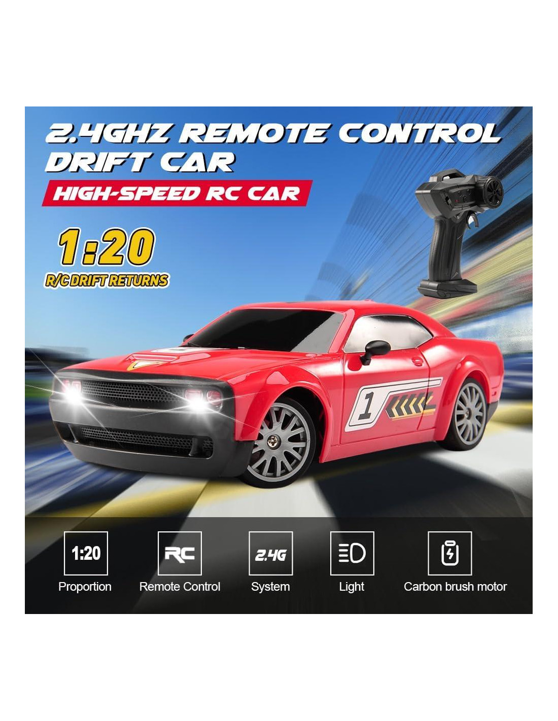 - [Coche de Control Remoto Drift 2.4Ghz]: Este coche de carreras RC drift viene con un control remoto de 2.4Ghz, operación de frecuencia de 2.4Ghz, más estable, tiempo de funcionamiento más largo, mayor distancia de control, con emparejamiento automático, puede soportar a varias personas conduciendo el coche drift al mismo tiempo sin ninguna interferencia.