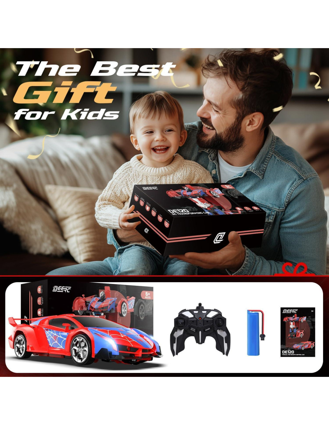 - Gran Regalo para Niños: ¡No te pierdas este juguete de auto imprescindible que dejará a ti y a tus seres queridos asombrados! Desata tu superhéroe interior y emprende emocionantes aventuras con el Auto Araña de Control Remoto Transformable Definitivo. Es adecuado para Cumpleaños, Día del Niño, Navidad, Pascua, Acción de Gracias, Halloween, y más.