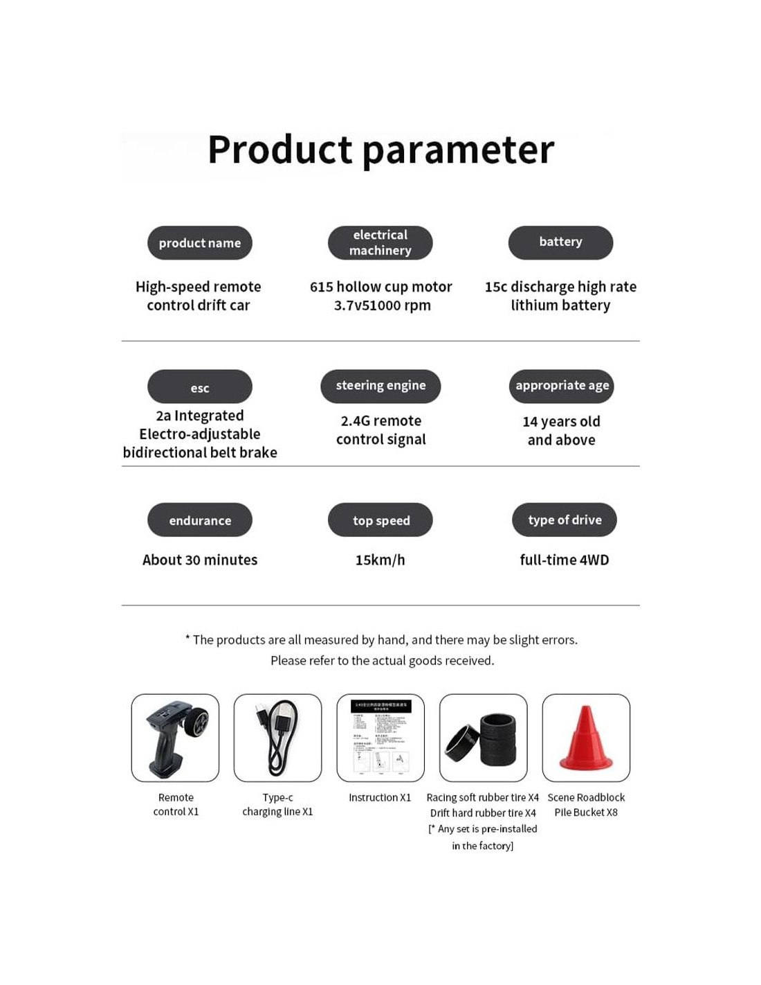 - Coche Drift RC Realista - Con una carrocería y pintura altamente detalladas, este coche drift se ve impresionante. Las dimensiones del producto: 11 x 4.5 x 3cm.