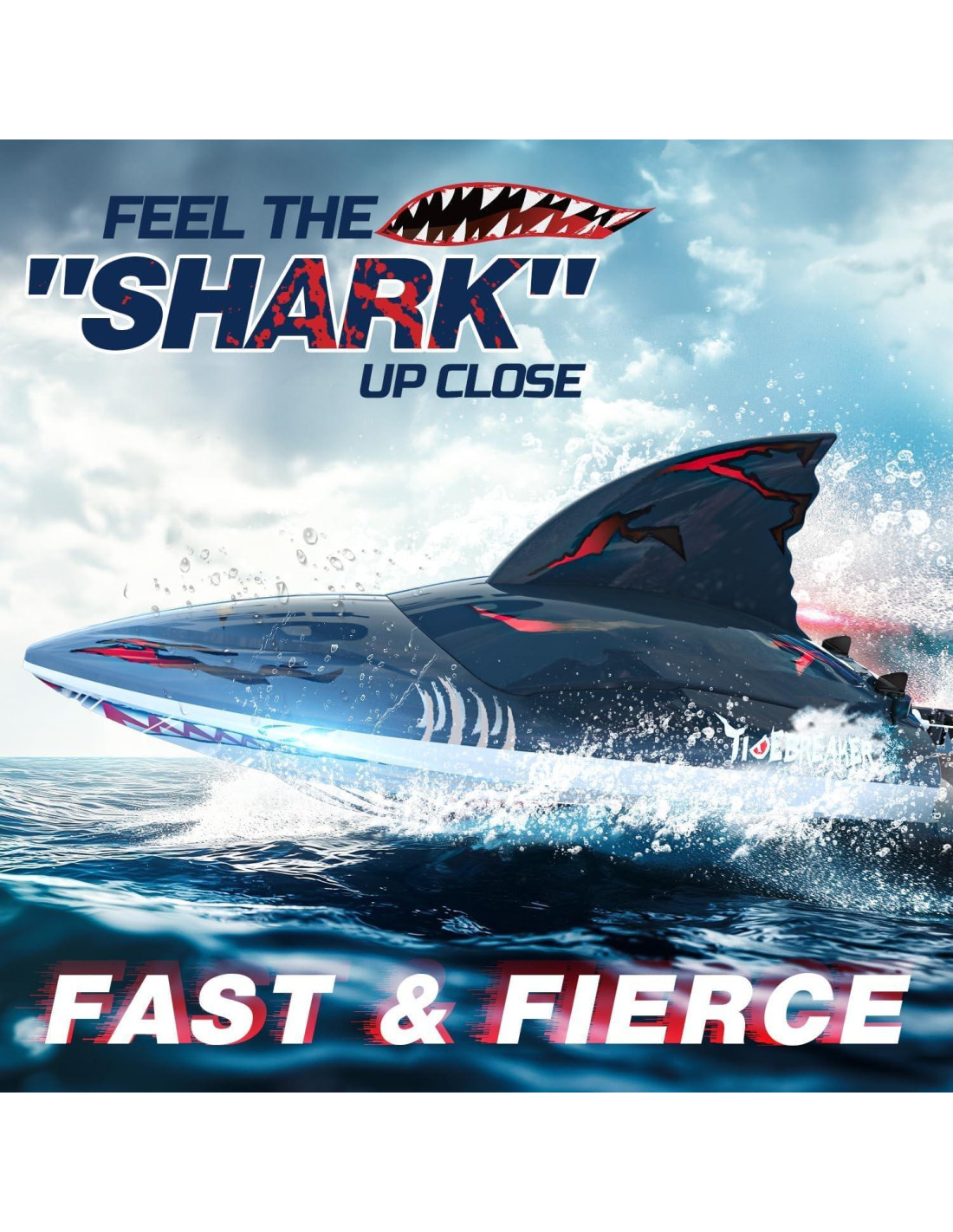 - Barco de Sueños para Buscadores de Emociones: Si estás en busca de un barco RC que tenga tanto impacto en rendimiento como en apariencia, has encontrado tu pareja. Con un diseño inspirado en tiburones que es tan feroz por fuera como poderoso por dentro, este demonio de velocidad no solo hace olas, sino que las domina. Con velocidad e impacto que destacan entre la multitud, es el juguete definitivo para aquellos que anhelan tanto estilo como sustancia en el agua.
