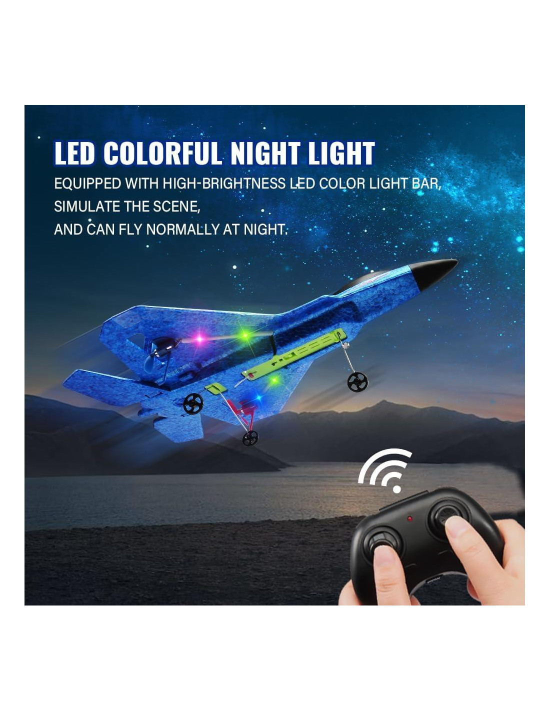 - Luz Colorida: El avión jet rc equipado con barra de luz LED, vuela libremente por la noche; de acuerdo con la forma y el diseño aerodinámico del verdadero caza, con hermosa apariencia y simulación de actitud de vuelo; Con 2PCS batería de litio de 3.7V 250mah para aeronaves.