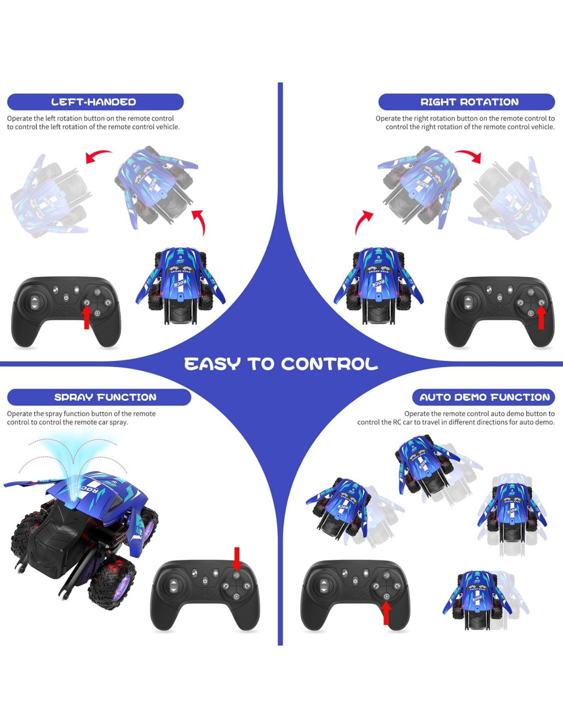 - COCHE RC BAILARÍN CON MÚSICA: ITEFDTUTNE presenta un coche de juguete - una nueva generación de coche RC con música y luces sensacionales, instalación de spray, rotación de 360. Con función de demostración automática. Presiona el botón de demostración para mostrar automáticamente acrobacias asombrosas, dejando a los niños inmersos en la diversión de conducir y un festín visual. Fácil de operar, adecuado para niños y adultos.