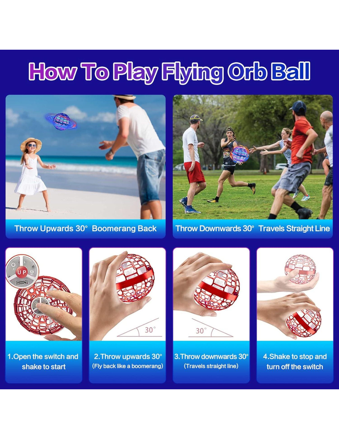 - Regalo Perfecto - Esta bola voladora se convertirá en el juguete más popular, que puede traer diversión infinita en una serie de actividades como cumpleaños, fiestas, jardín al aire libre, etc. Es un regalo novedoso genial para niños en Pascua, Navidad, Halloween, Día de Acción de Gracias, Año Nuevo, etc. También los mejores regalos de cumpleaños para niños y adolescentes. Tenemos videos instructivos detallados e instrucciones detalladas, por favor léelos cuidadosamente. Si tienes alguna pregunta, no dudes en contactarnos.