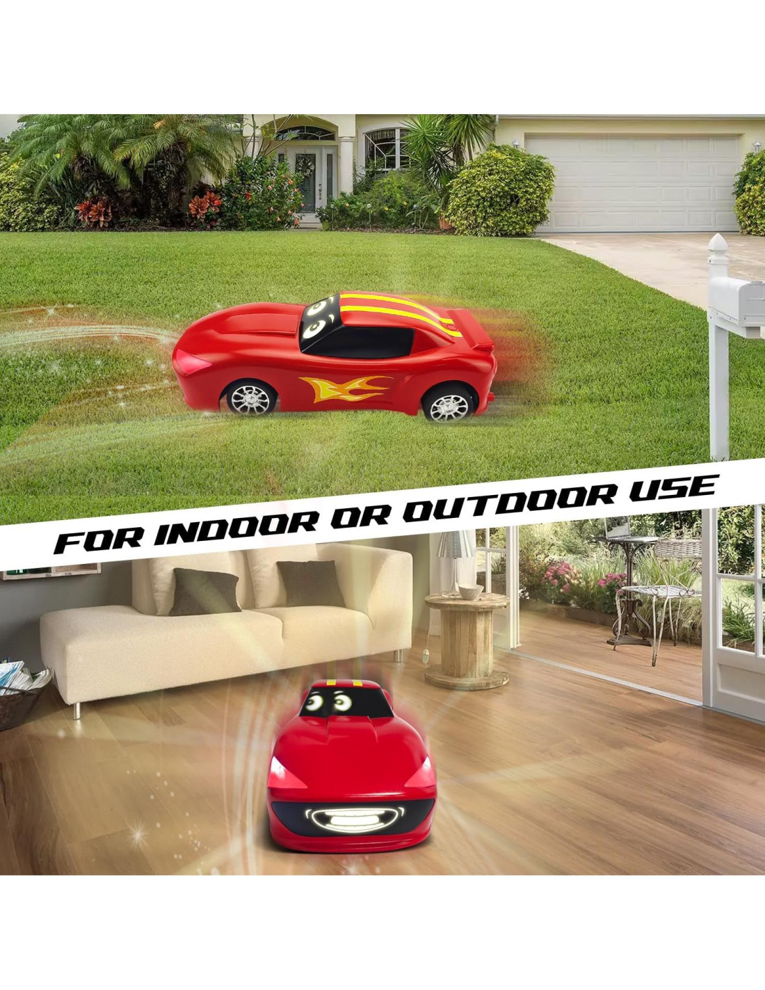- El vehículo contiene ojos/boca animados que generan declaraciones de audio/video al mover el vehículo en diferentes direcciones