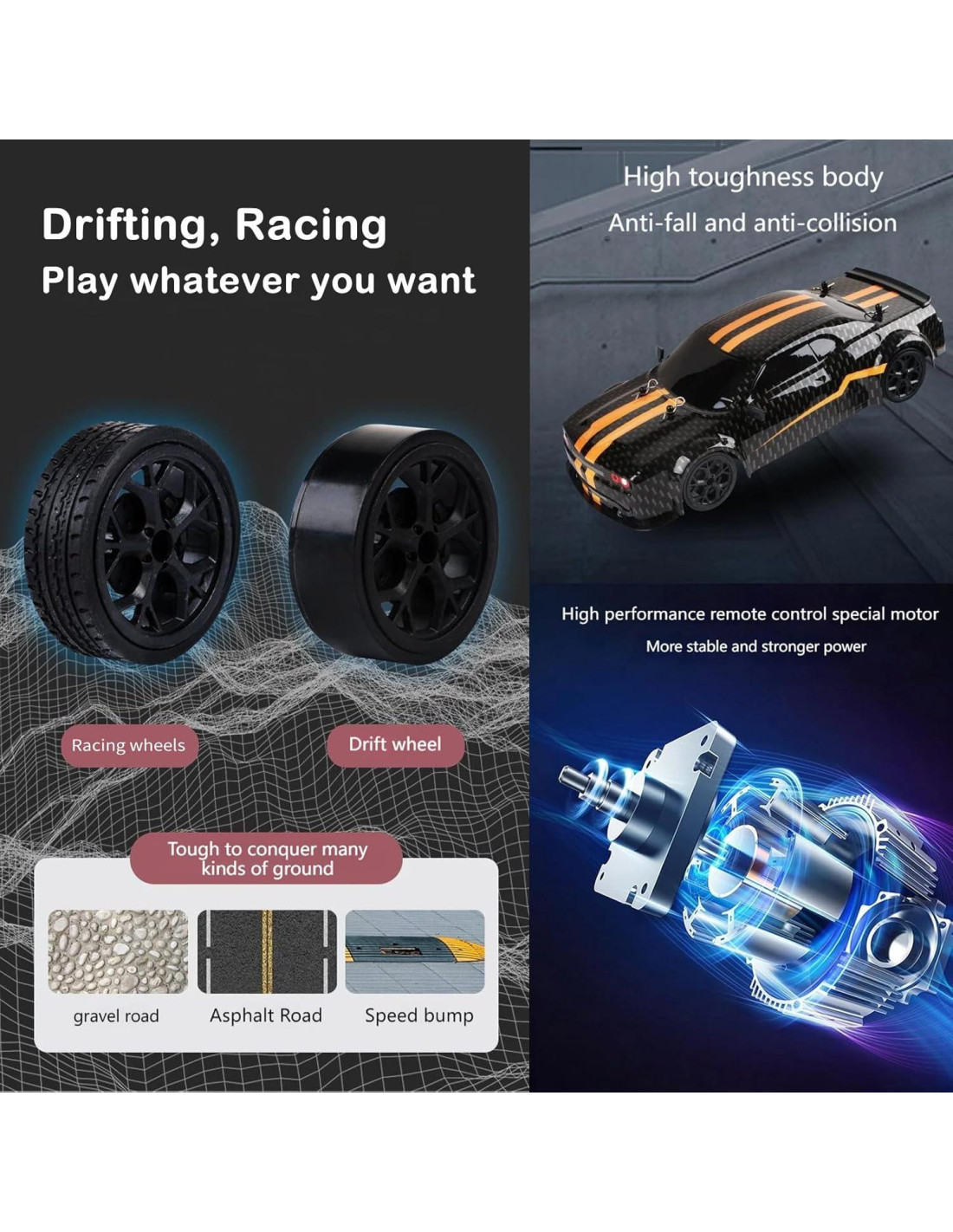 - [Materiales Duraderos] : El coche de carreras de deriva está construido con materiales de alta resistencia, asegurando un excelente rendimiento anti-colisión y anti-caída, protegiendo el vehículo durante conducciones intensas.