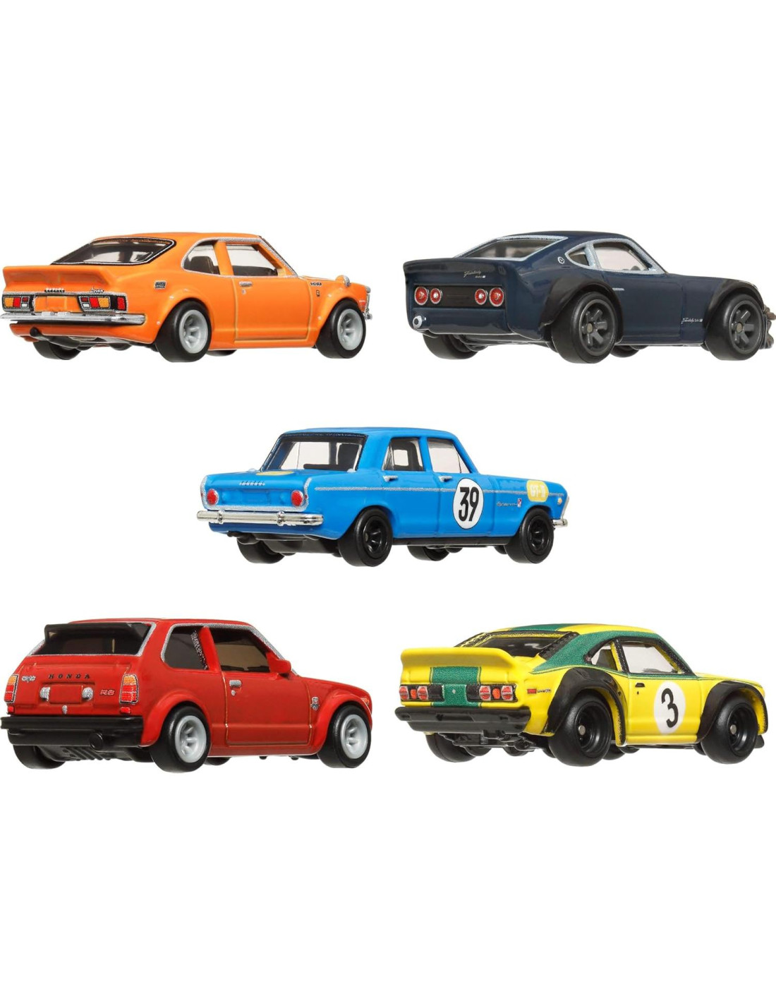 - Esta colección destaca vehículos renombrados de Japón con réplicas de un Toyota Corolla TE 27, Prince Skyline GT, Mazda RX3, Honda Civic Custom y Nissan Fairlady Z.