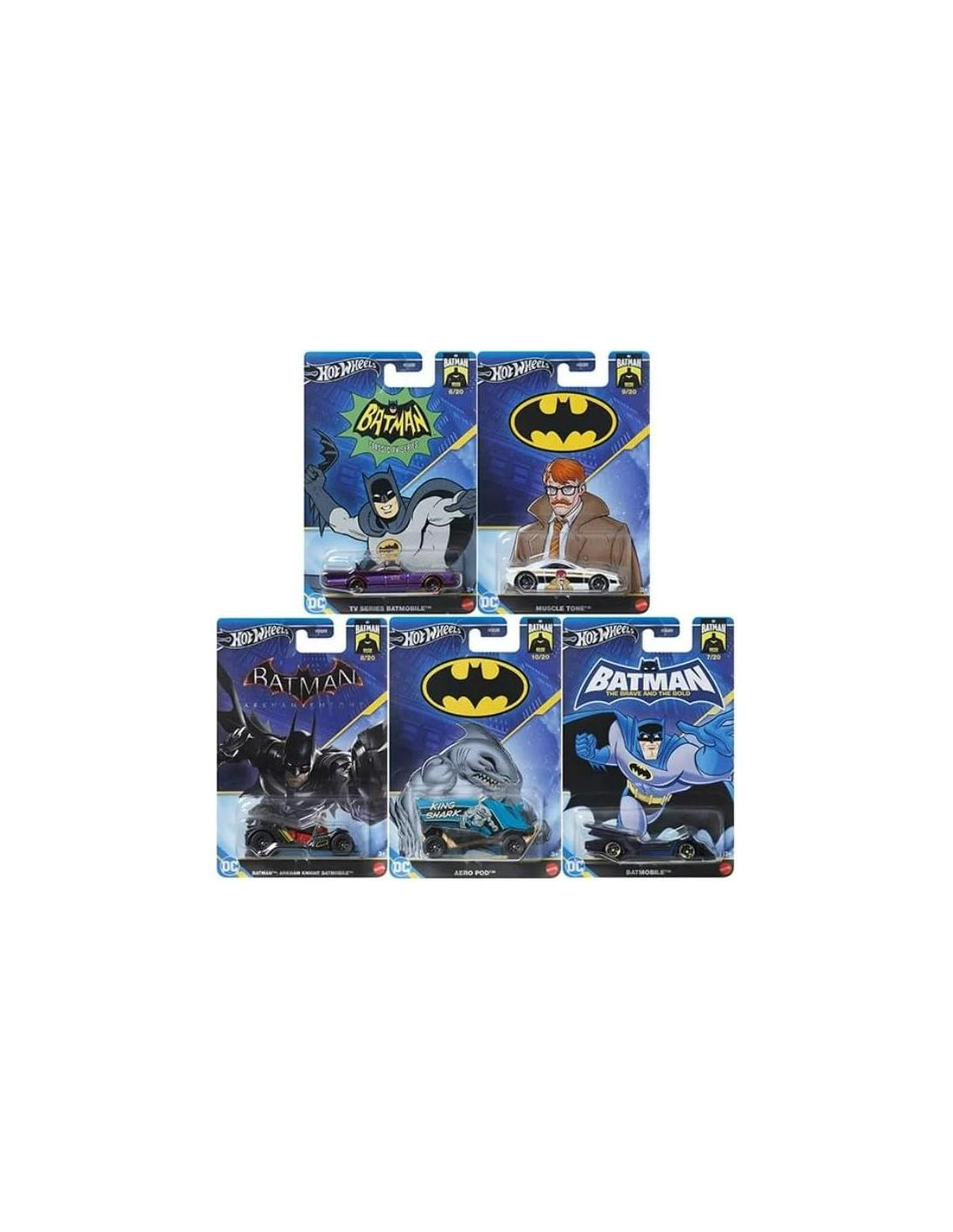 Estas populares fundiciones de metal de Batman Hot Wheels tienen neumáticos reales, gráficos impactantes y un empaque auténtico inspirado en las marcas que representan. Genial para los fanáticos de Batman, los fanáticos de figuras de acción, los fanáticos del entretenimiento y los aficionados a Hot Wheels. ¡No querrás perderte ninguno de estos impresionantes autos, así que colecciona todos!