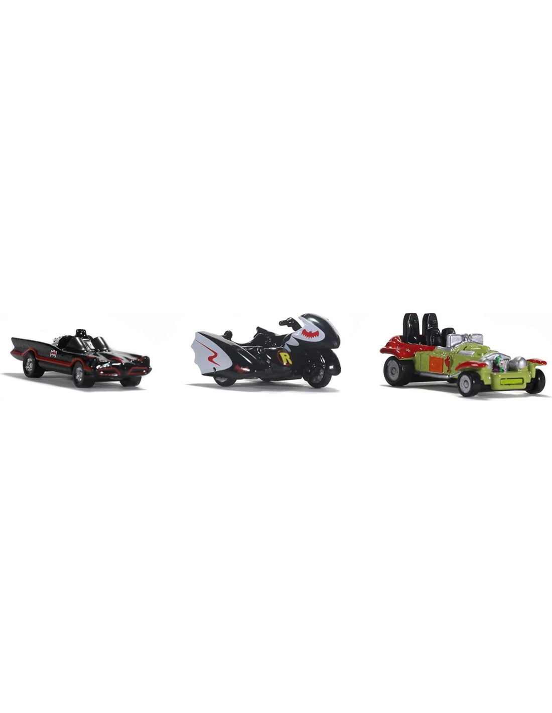 - Producto auténticamente licenciado directamente de la Serie Clásica de TV de DC Comics Batman, incluye Batmóvil de la Serie Clásica de TV, Batimoto y Jokermóvil
