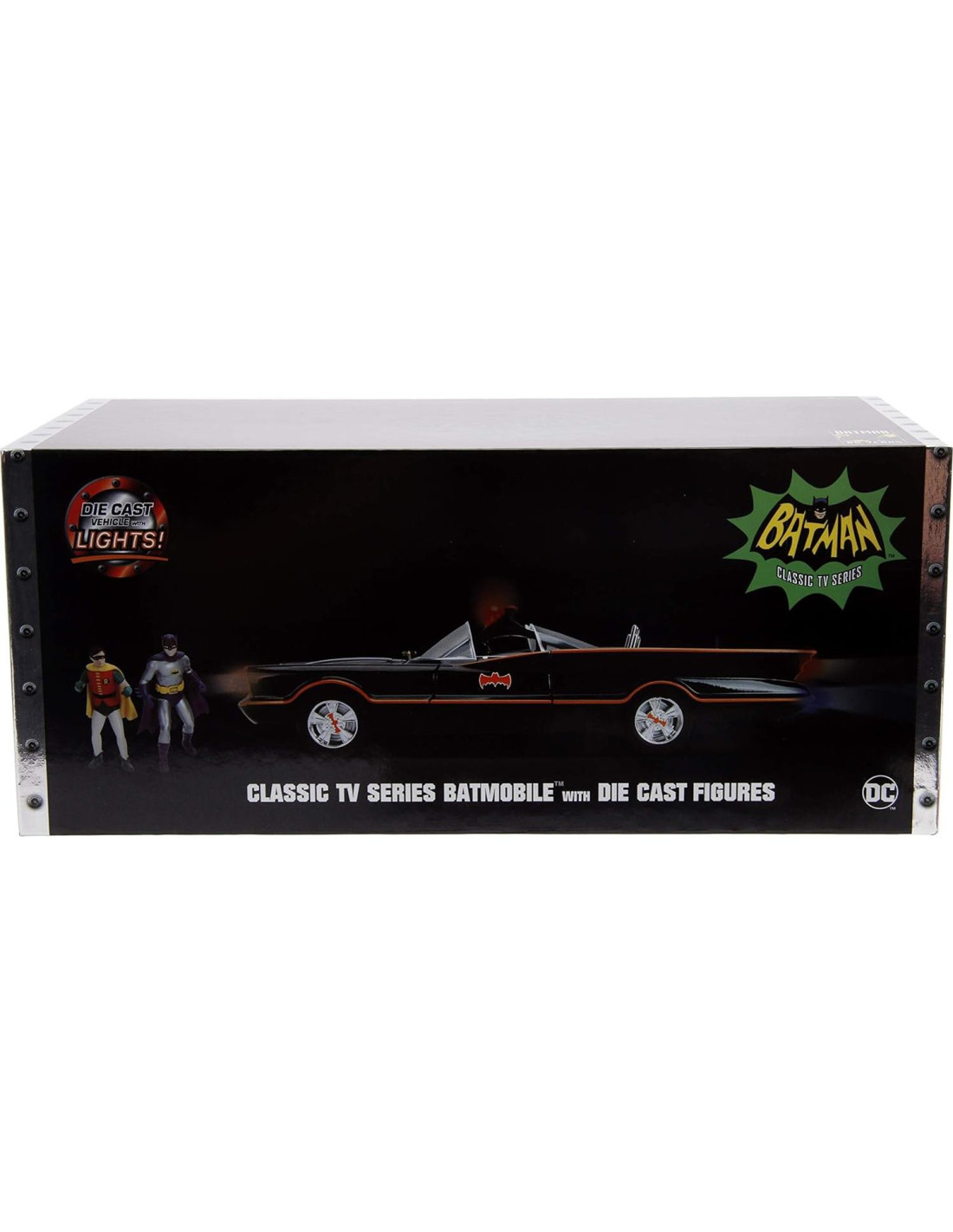 ¡Al batmóvil! ¡Ninguna colección de Batman está completa sin el icónico batmóvil de Batman la serie de TV clásica! Con un cuerpo de metal fundido, neumáticos de goma y características iluminadas, este batmóvil a escala 1:18 es un imprescindible en cualquier colección. Incluye figuras de Batman y Robin de 100% metal fundido de 3" de altura. Ya sea en las calles o fuera de carretera, ¡el batmóvil es formidable en todo tipo de terreno! ¡Agrega esto a tu colección hoy!