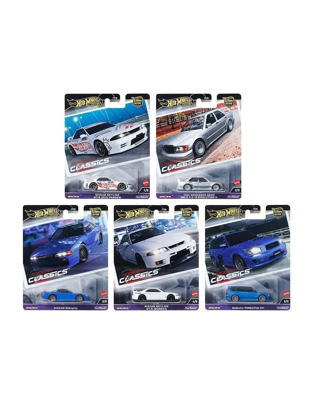 - DETALLES DE LA COLECCIÓN: serie Clásicos Modernos que presenta 5 vehículos de metal altamente detallados, incluyendo icónicos autos de rendimiento japoneses y alemanes
