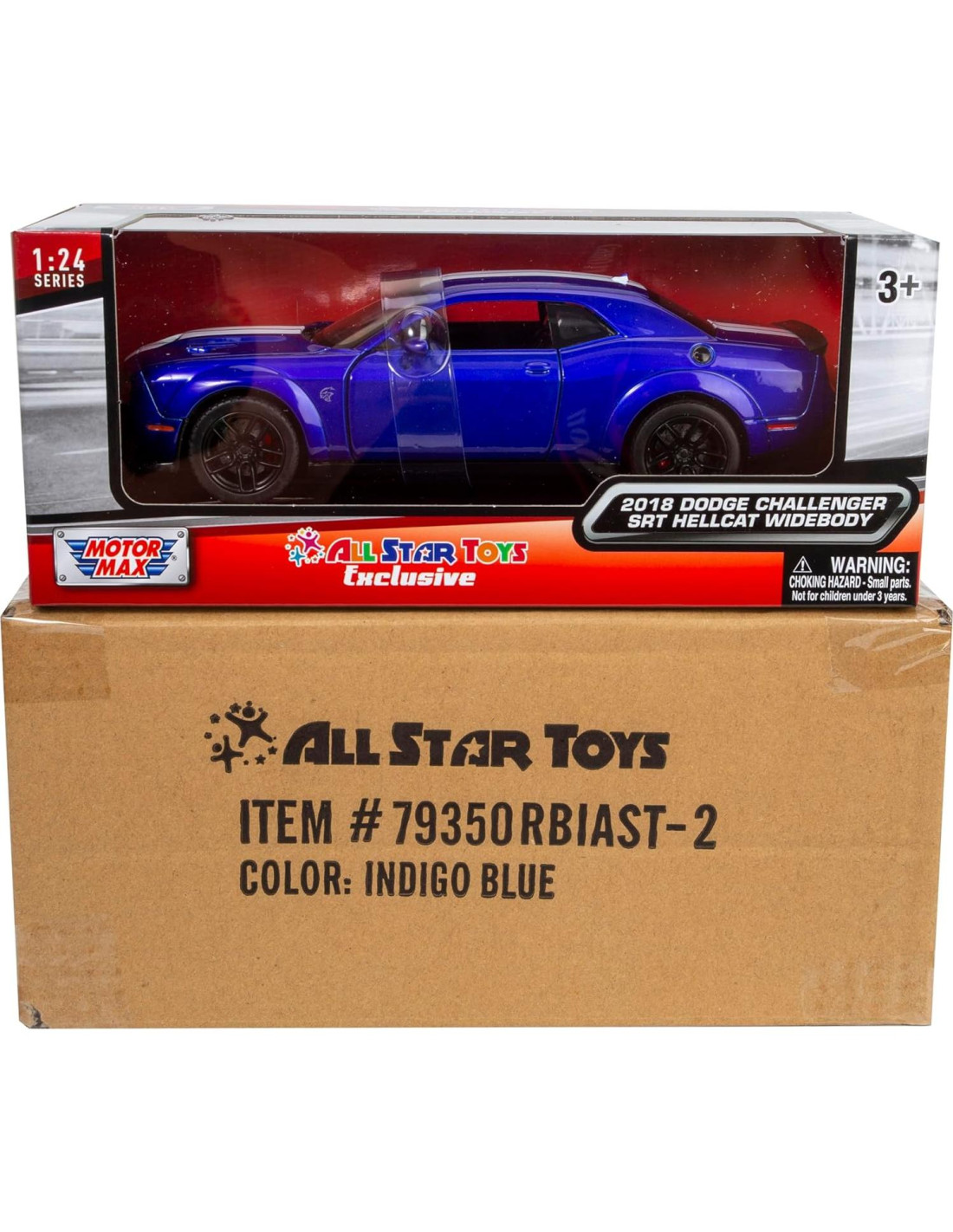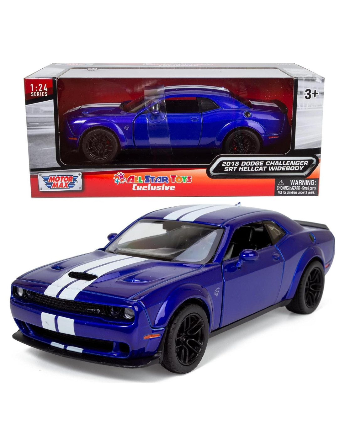 Aventuras a alta velocidad para niños amantes de los coches y coleccionistas adultos. Ofrece a los coleccionistas la máxima emoción con este modelo Diecast exclusivo de Dodge Charger de All Star Toys para niños y adultos. Basado en el Dodge Charger SRT Hellcat Widebody 2018, está lleno de detalles auténticos. Presenta puertas que se abren y un interior detallado. Lo mejor de todo es que está terminado en un asombroso color azul índigo y rayas blancas que los entusiastas de los coches adoran. Las dimensiones del artículo son aproximadamente 19.05 x 7.62 x 6.99 centímetros. Viene en una caja de ventana y se envía en una caja de cartón corrugado para mejor protección.