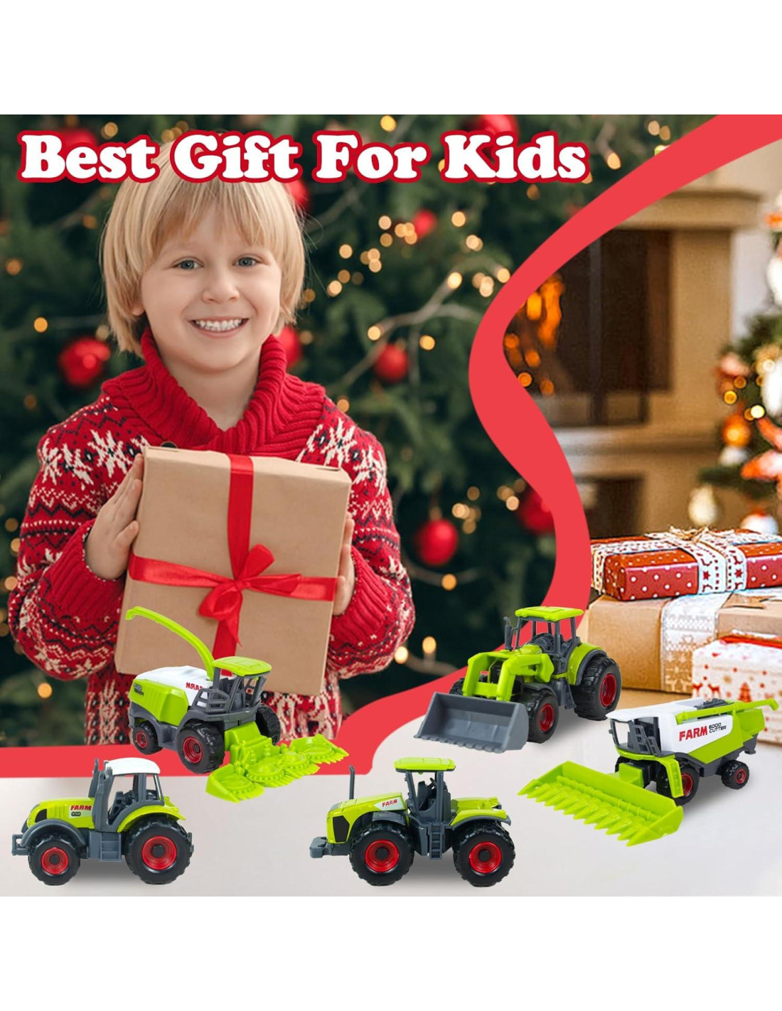 - Paquete de 5 Juguetes de Tractor para Niños: El conjunto de juguetes de tractor de metal fundido incluye 1x cosechadora, 1x cosecha forrajera, 1x tractor, 1x tractor cargador y 1x tractor con excavadora. Cada tractor mide aproximadamente: 3 pulgadas (7.62 cm) de largo; Juguetes de tractor perfectos para niños de 3 4-7 8-12 para jugar en interiores y exteriores