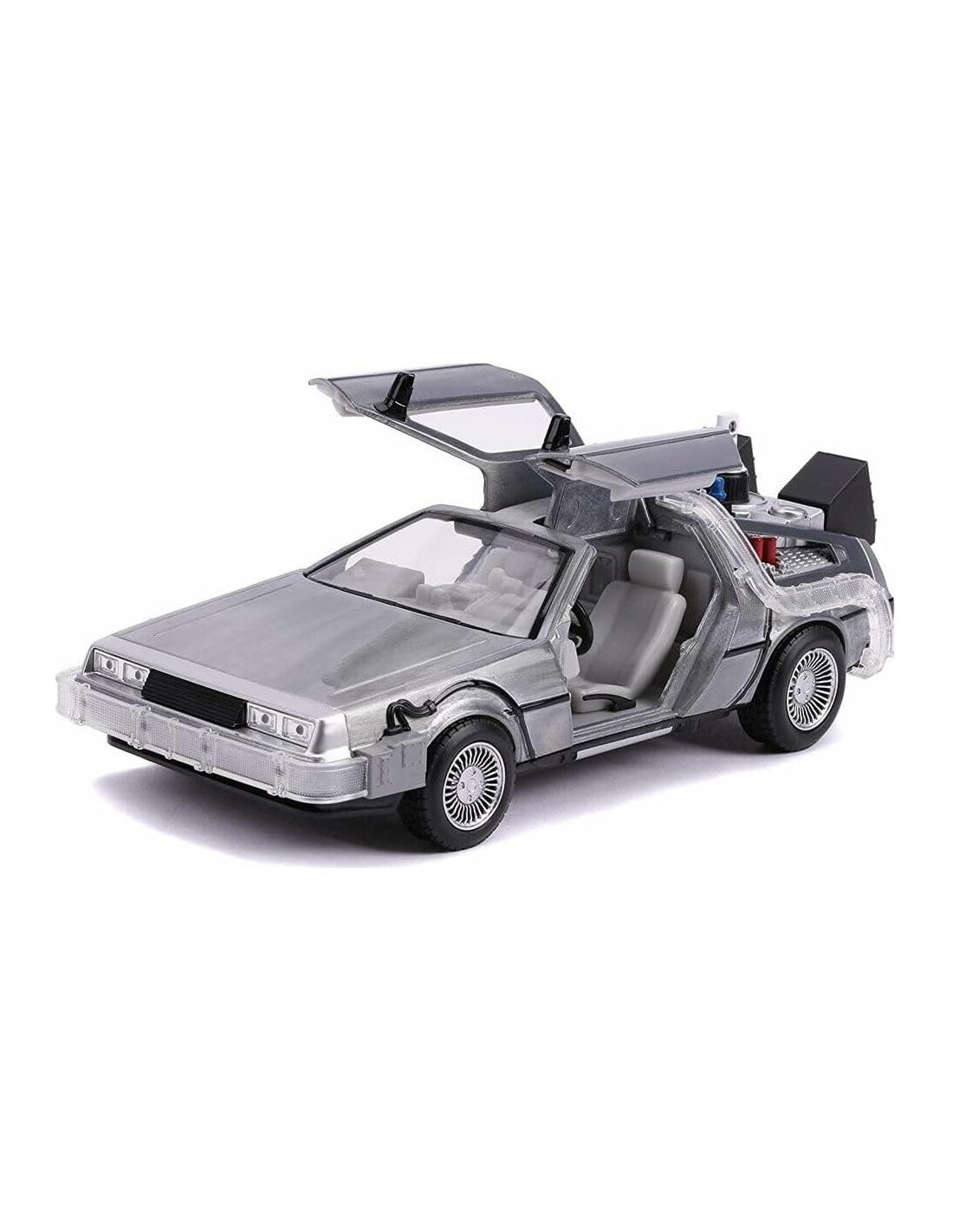 Viaja en el tiempo con uno de los vehículos más icónicos de la historia del cine: el dlorean convertido en máquina del tiempo como se ve en la película Regreso al Futuro (1989); Hecho de metal, con función de luz y modo planeador, este vehículo a escala 1:24 debe estar presente en todas las colecciones; las puertas se abren, modo planeador (las ruedas se levantan). 100% Licencia Oficial.