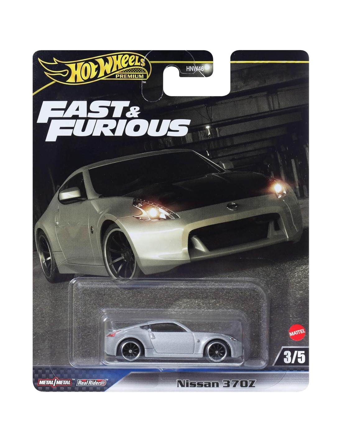 - Crea una colección de alta octanaje de vehículos Hot Wheels con un coche de metal fundido Premium Rápido y Furioso a escala 1:64.