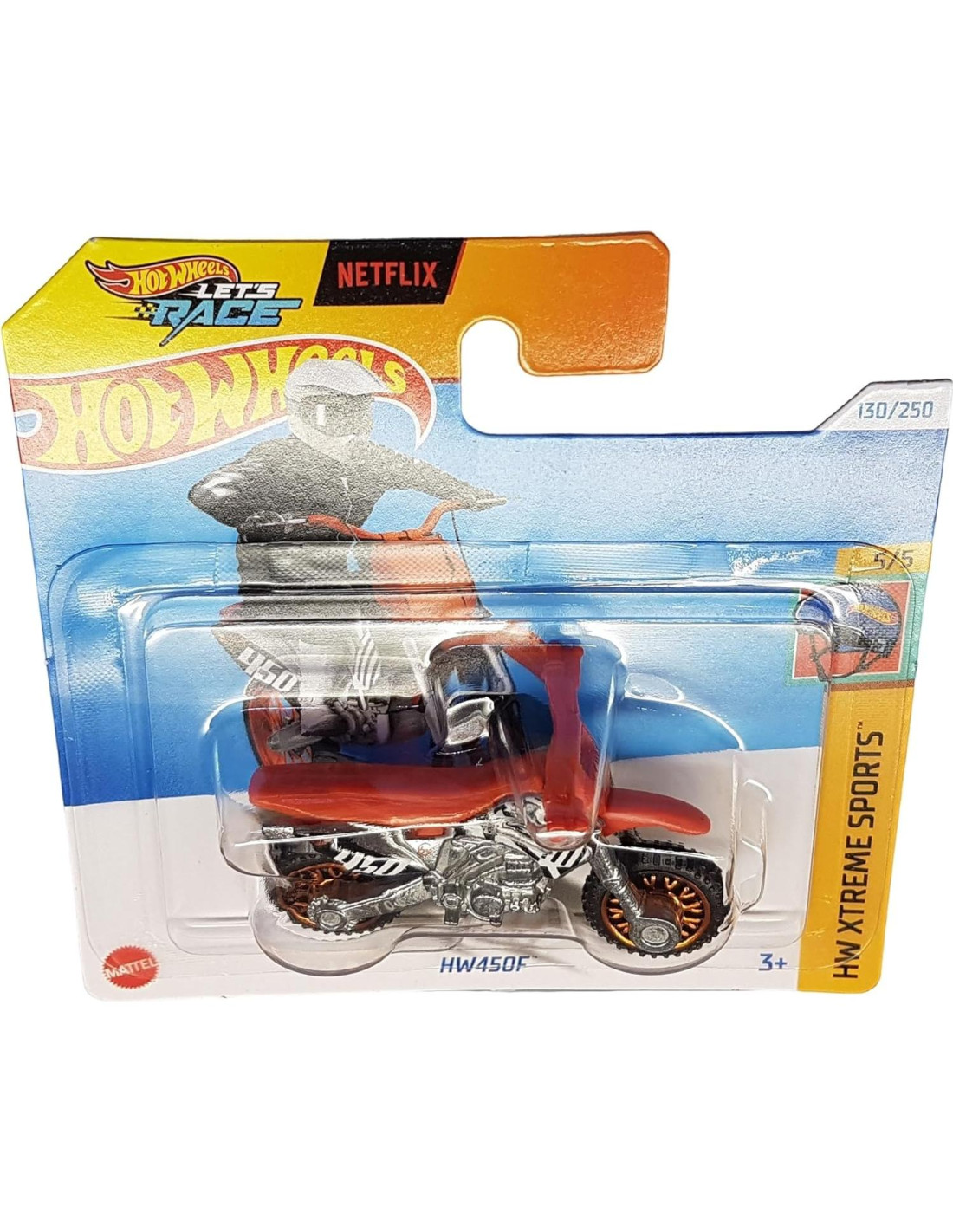 - Coleccionable: Hot Wheels HW450F HW Xtreme Sports Car, 5/5 en la serie, con un llamativo esquema de color naranja y negro.