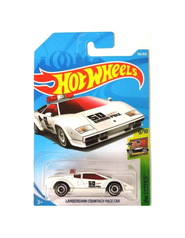 HOT WHEELS EXOTICS 9/10, LAMBORGHINI COUNTACH PACE CAR BLANCO 316/365 TARJETA DEL 50 ANIVERSARIO