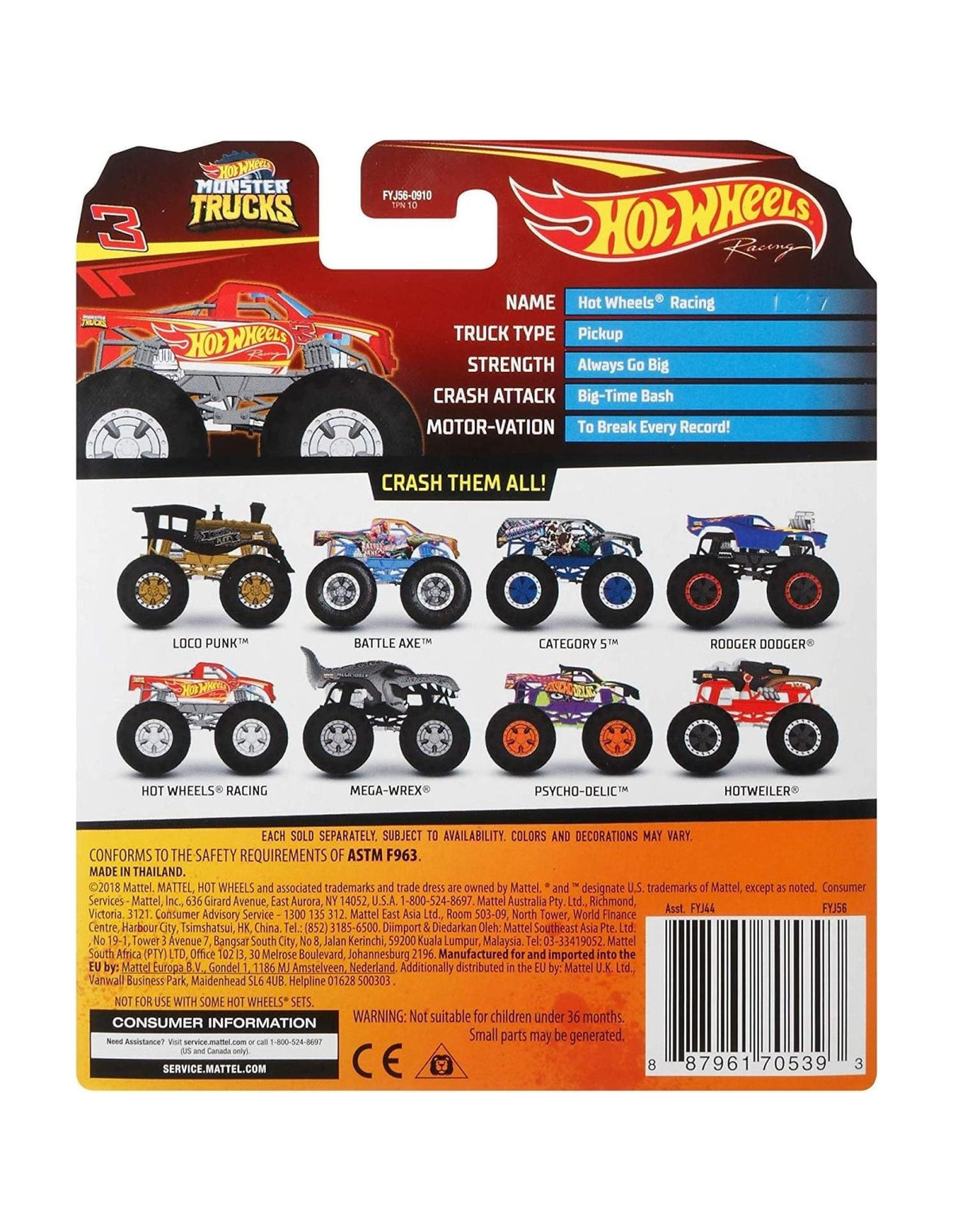 - Cada Camión Monstruo Hot Wheels viene con un auto aplastable para acción de aplastamiento inmediata.
