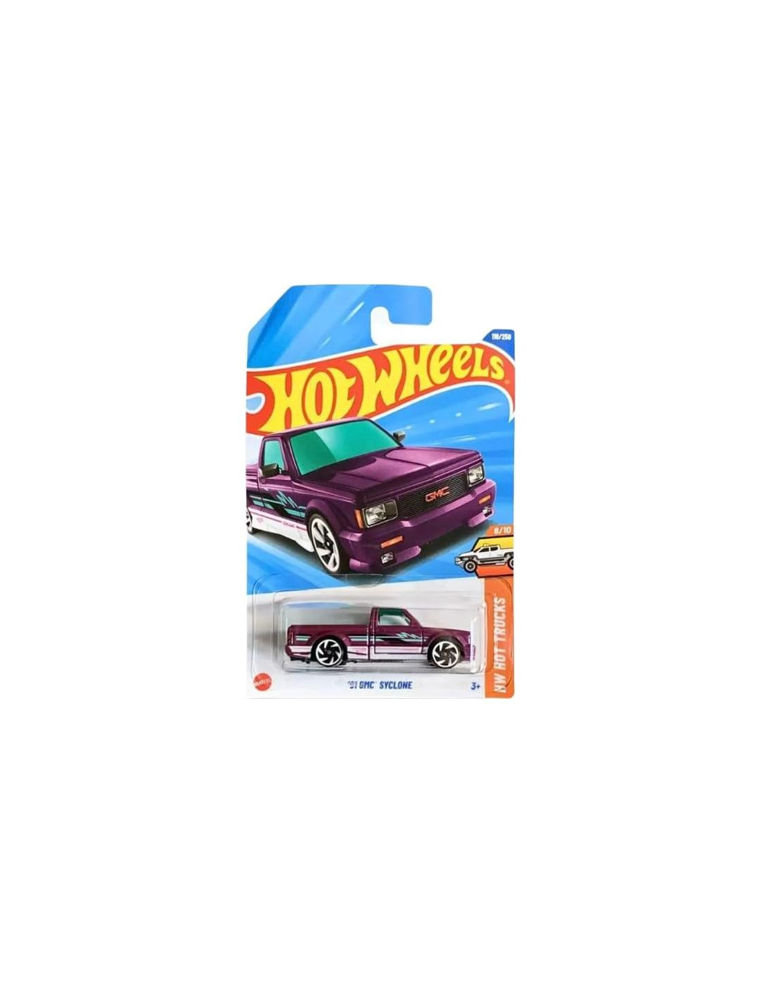 - DETALLES DEL COLECCIONABLE: Hot Wheels '91 GMC Syclone en impresionante acabado púrpura, parte de la serie HW Hot Trucks (8/10) y numerada 119/250
